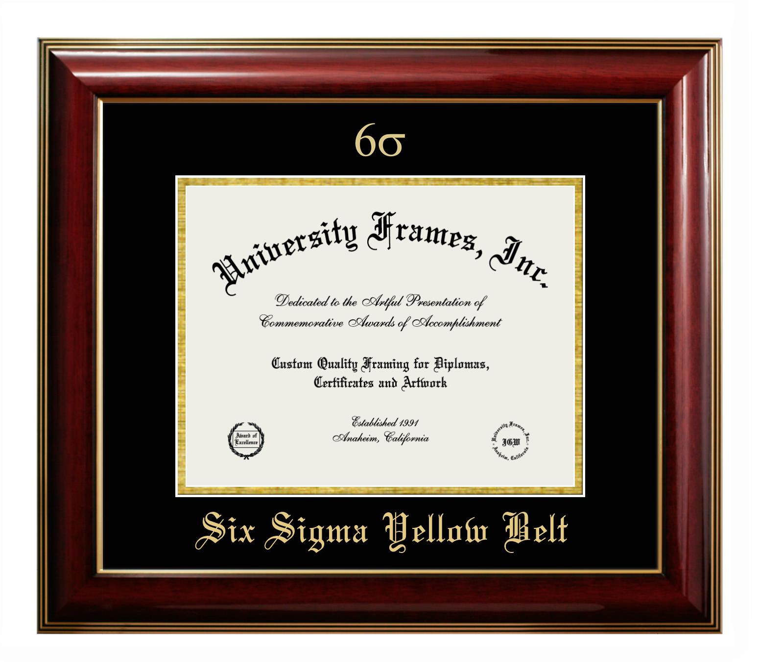 Want a professional diploma frame to showcase your achievement? Or are you looking for a fantastic graduation gift for a new grad or alum? Our official Six Sigma Yellow Belt diploma frames are the best option to showcase any well-deserved diploma. Handcrafted in the USA, our best-in-class degree frames are custom-designed for the official Six Sigma Yellow Belt diploma. You can customize your frame with our hassle-free online design tool. Start customizing your diploma frame now!