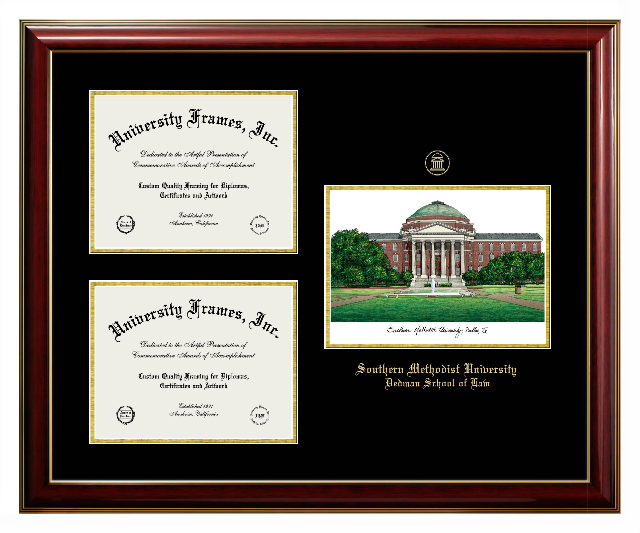 Want a professional diploma frame to showcase your achievement? Or are you looking for a fantastic graduation gift for a new grad or alum? Our official Southern Methodist University School of Law diploma frames are the best option to showcase any well-deserved diploma. Handcrafted in the USA, our best-in-class degree frames are custom-designed for the official Southern Methodist University School of Law diploma. You can customize your frame with our hassle-free online design tool. Start customizing your diploma frame now!