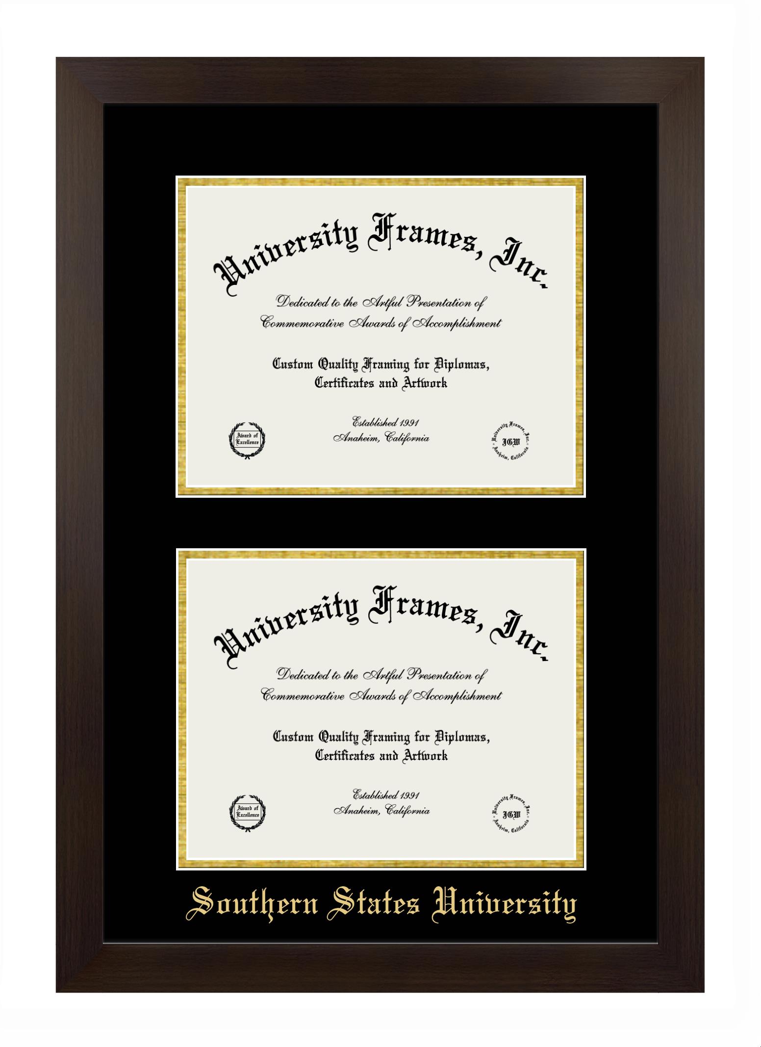 Want a professional diploma frame to showcase your achievement? Or are you looking for a fantastic graduation gift for a new grad or alum? Our official Southern States University diploma frames are the best option to showcase any well-deserved diploma. Handcrafted in the USA, our best-in-class degree frames are custom-designed for the official Southern States University diploma. You can customize your frame with our hassle-free online design tool. Start customizing your diploma frame now!