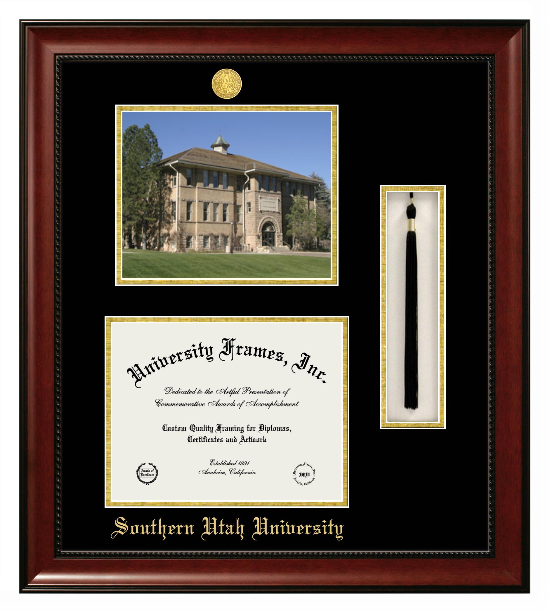 Want a professional diploma frame to showcase your achievement? Or are you looking for a fantastic graduation gift for a new grad or alum? Our official Southern Utah University diploma frames are the best option to showcase any well-deserved diploma. Handcrafted in the USA, our best-in-class degree frames are custom-designed for the official Southern Utah University diploma. You can customize your frame with our hassle-free online design tool. Start customizing your diploma frame now!