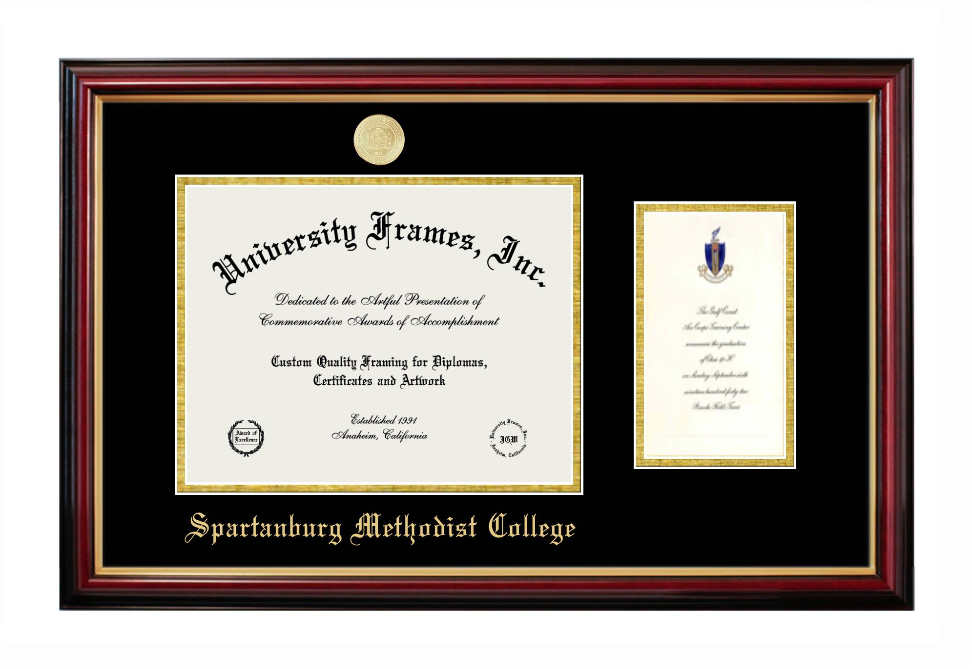 Want a professional diploma frame to showcase your achievement? Or are you looking for a fantastic graduation gift for a new grad or alum? Our official Spartanburg Methodist College diploma frames are the best option to showcase any well-deserved diploma. Handcrafted in the USA, our best-in-class degree frames are custom-designed for the official Spartanburg Methodist College diploma. You can customize your frame with our hassle-free online design tool. Start customizing your diploma frame now!