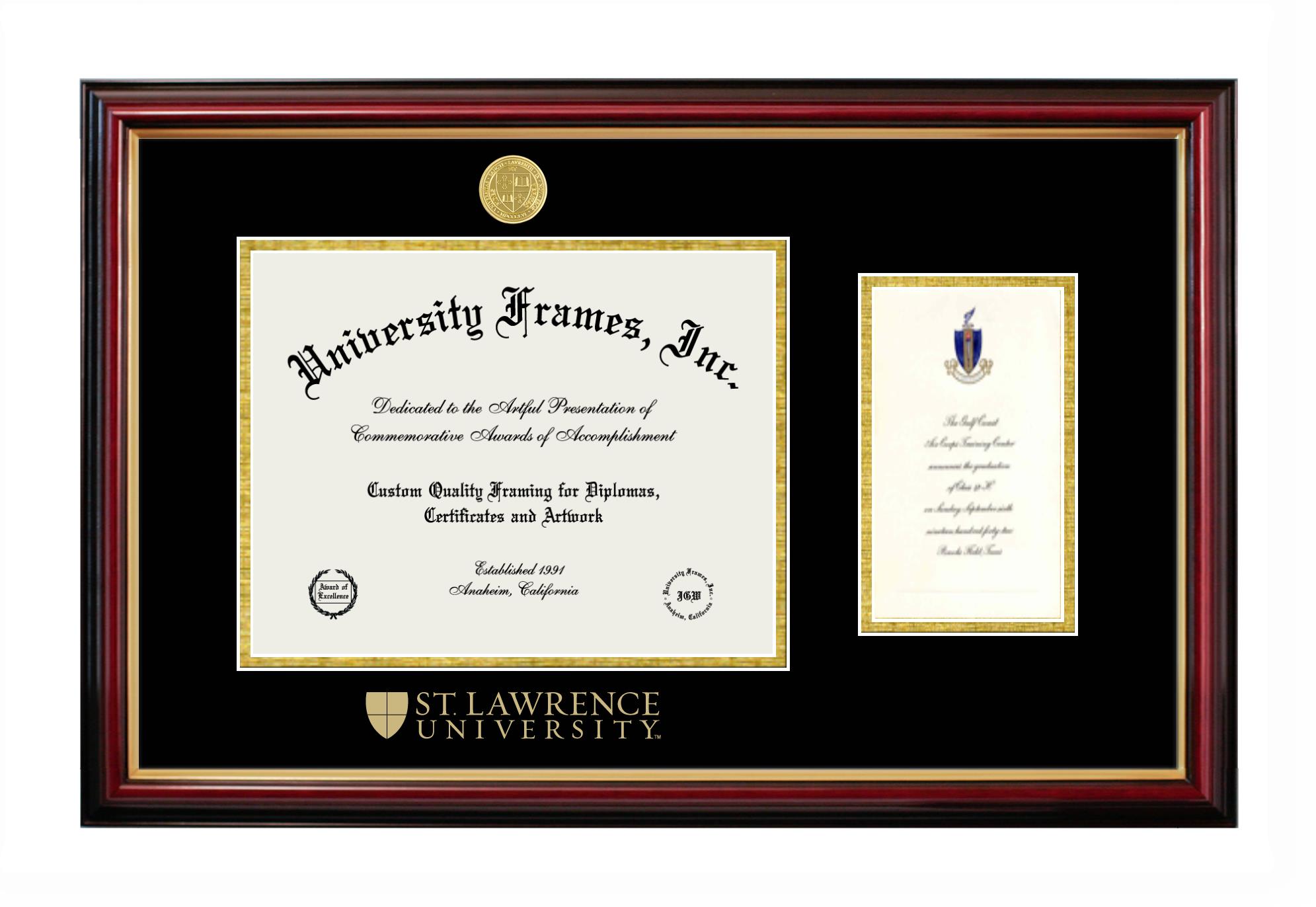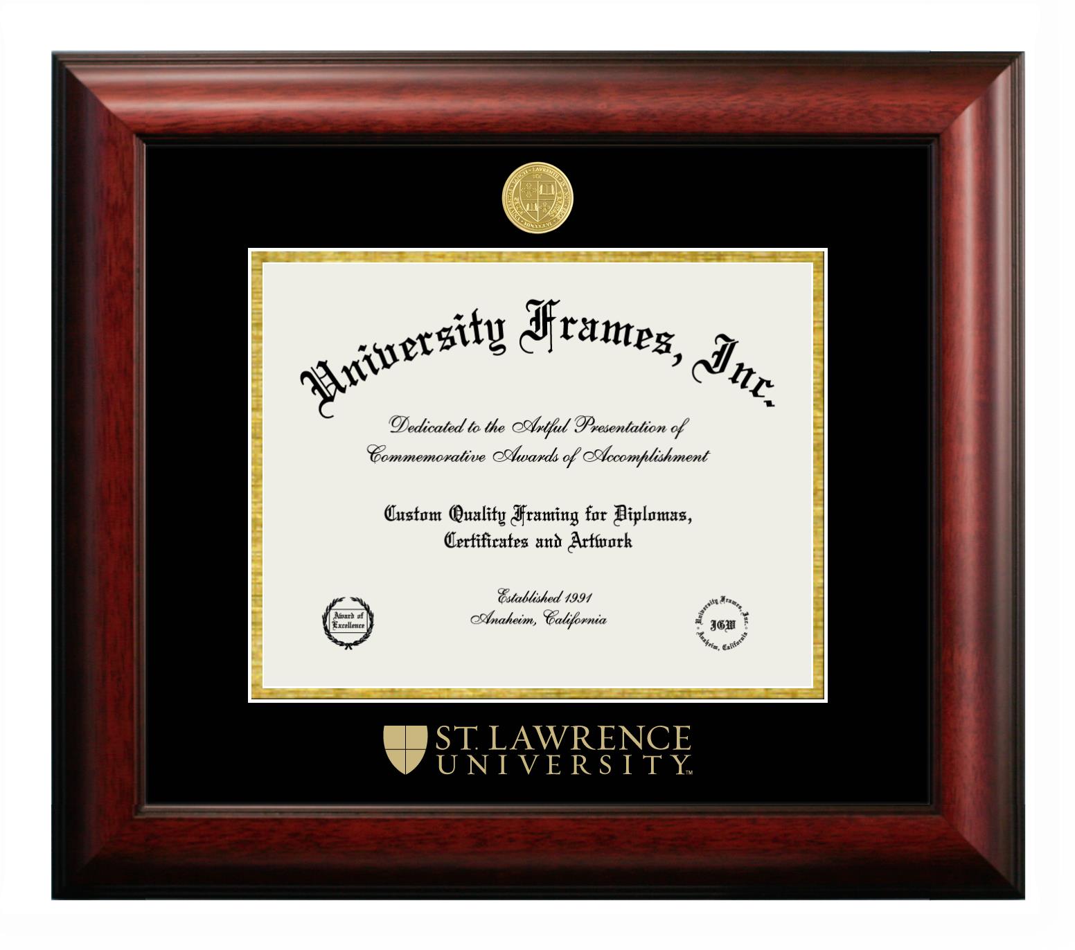 Want a professional diploma frame to showcase your achievement? Or are you looking for a fantastic graduation gift for a new grad or alum? Our official St. Lawrence University diploma frames are the best option to showcase any well-deserved diploma. Handcrafted in the USA, our best-in-class degree frames are custom-designed for the official St. Lawrence University diploma. You can customize your frame with our hassle-free online design tool. Start customizing your diploma frame now!