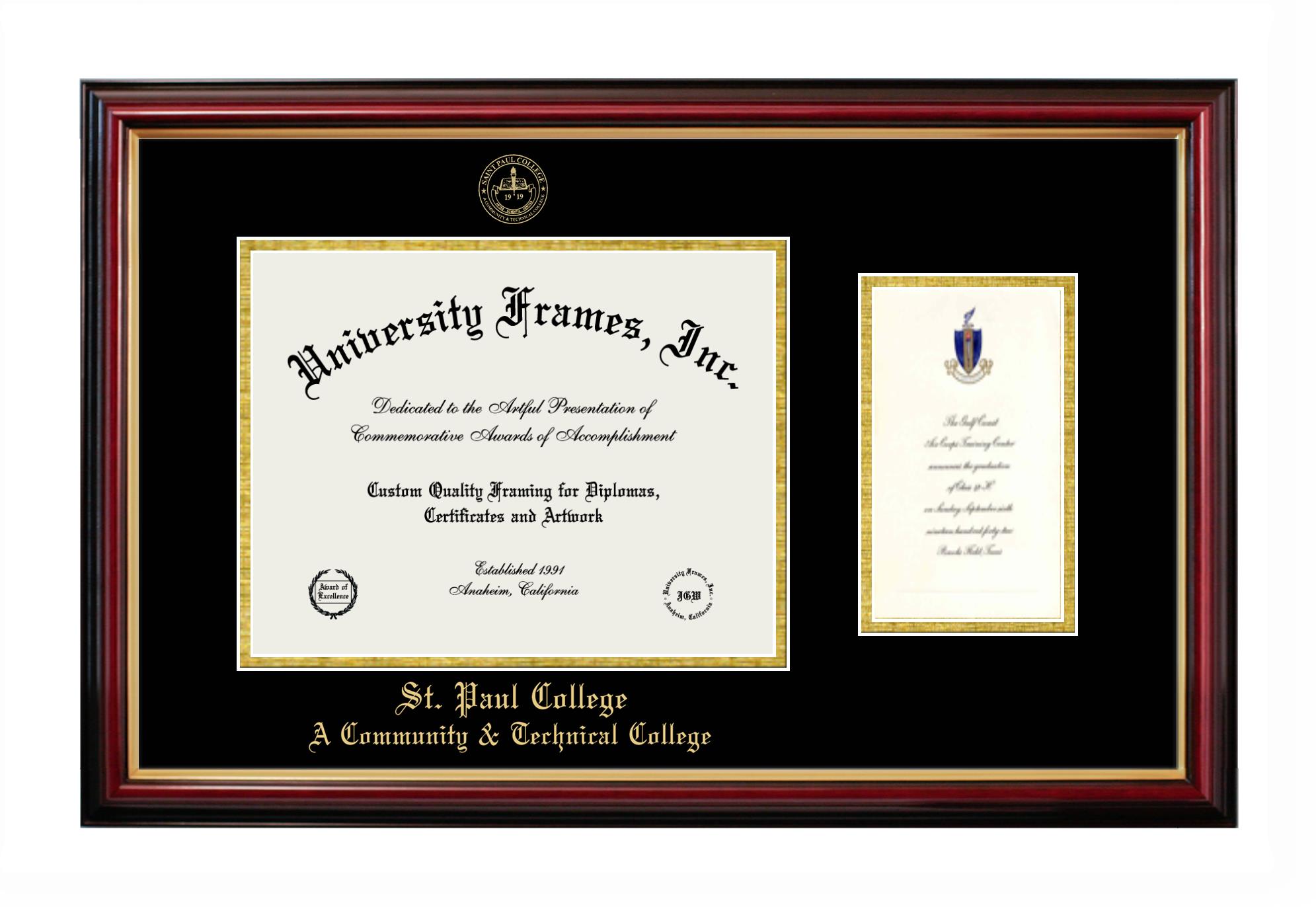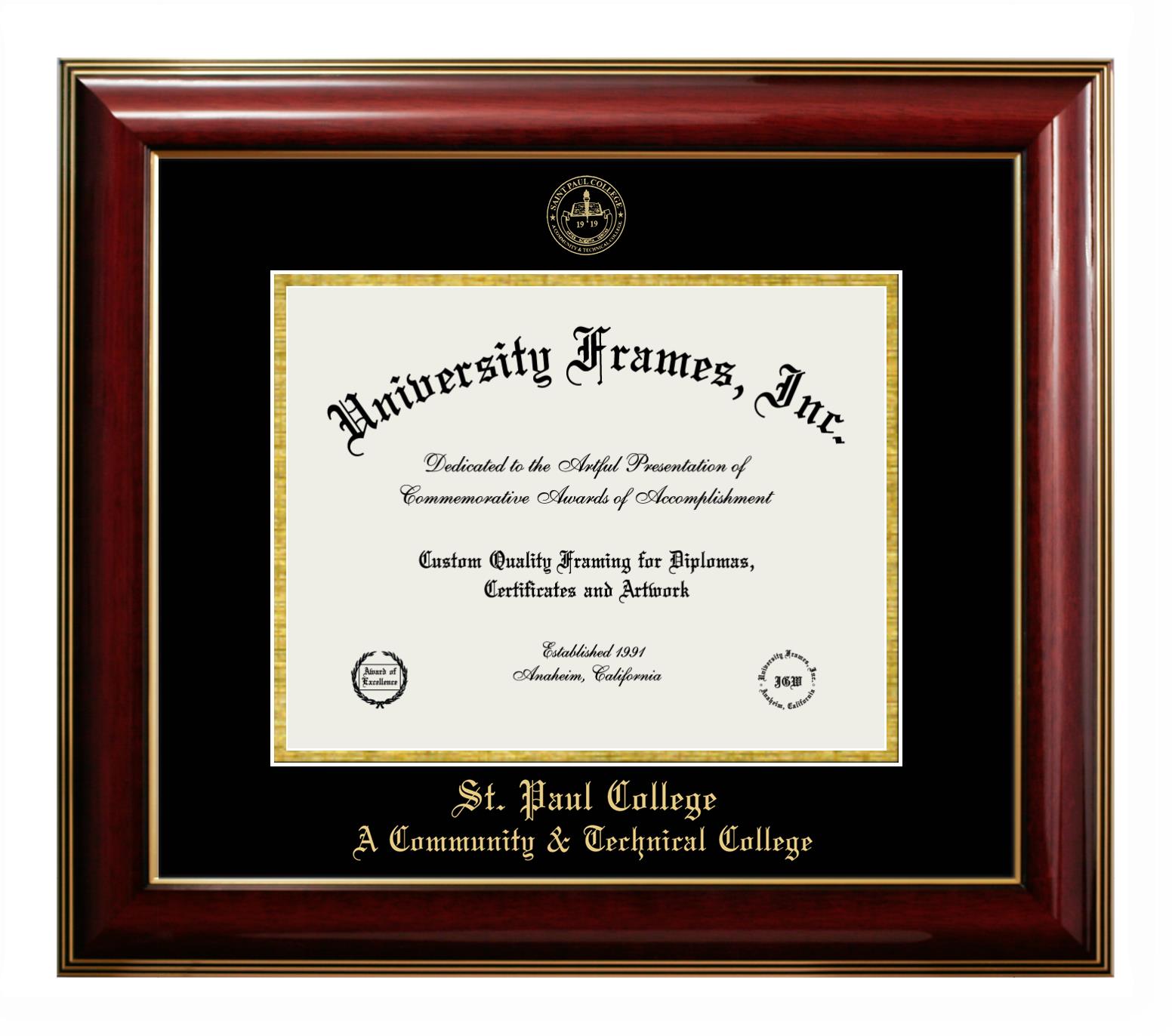 Want a professional diploma frame to showcase your achievement? Or are you looking for a fantastic graduation gift for a new grad or alum? Our official St. Paul College A Community & Technical College diploma frames are the best option to showcase any well-deserved diploma. Handcrafted in the USA, our best-in-class degree frames are custom-designed for the official St. Paul College A Community & Technical College diploma. You can customize your frame with our hassle-free online design tool. Start customizing your diploma frame now!
