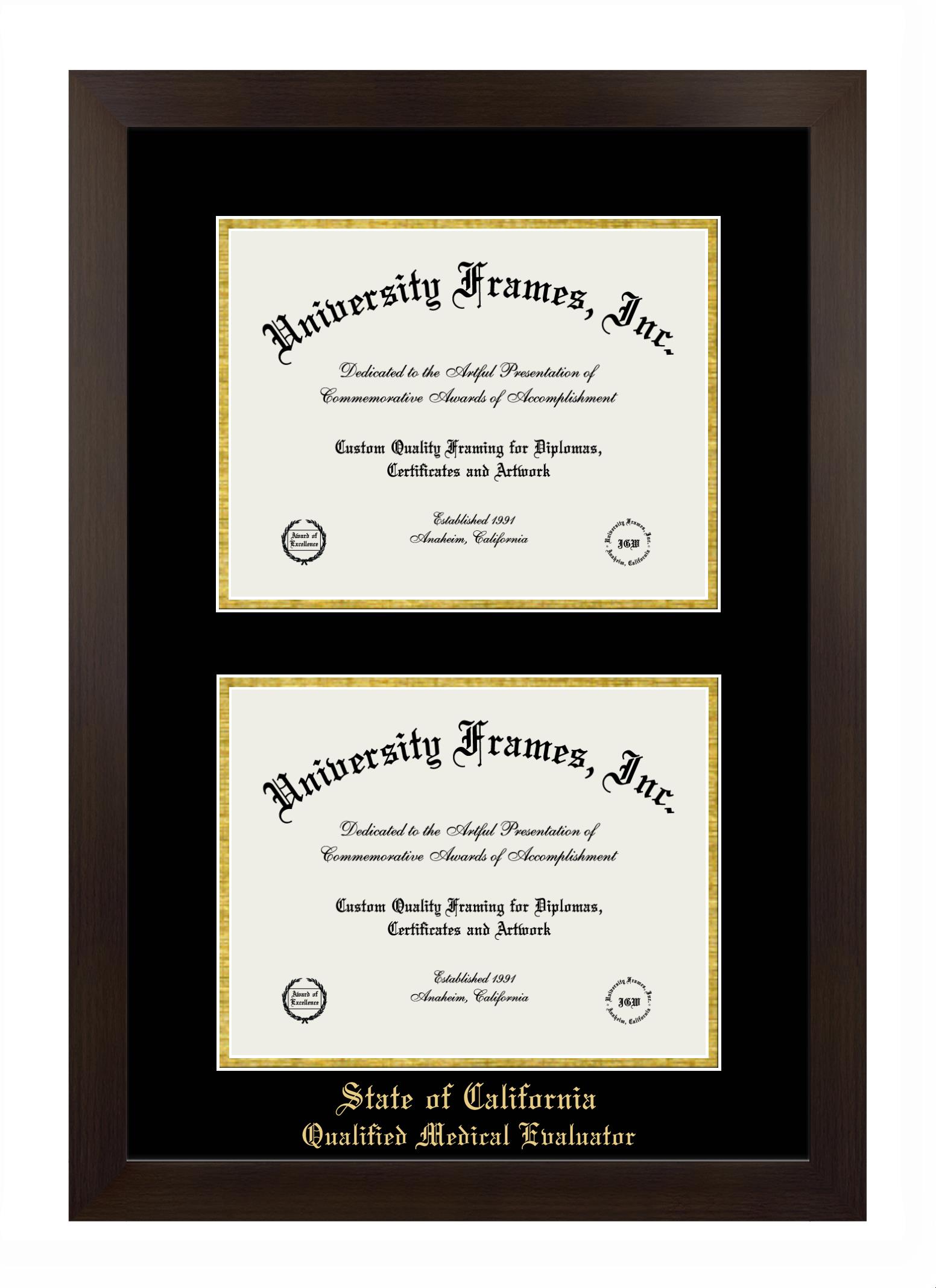 Want a professional diploma frame to showcase your achievement? Or are you looking for a fantastic graduation gift for a new grad or alum? Our official State of California Qualified Medical Evaluator diploma frames are the best option to showcase any well-deserved diploma. Handcrafted in the USA, our best-in-class degree frames are custom-designed for the official State of California Qualified Medical Evaluator diploma. You can customize your frame with our hassle-free online design tool. Start customizing your diploma frame now!
