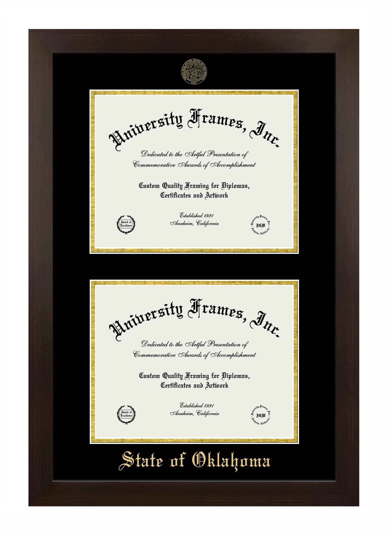 Want a professional diploma frame to showcase your achievement? Or are you looking for a fantastic graduation gift for a new grad or alum? Our official State of Oklahoma diploma frames are the best option to showcase any well-deserved diploma. Handcrafted in the USA, our best-in-class degree frames are custom-designed for the official State of Oklahoma diploma. You can customize your frame with our hassle-free online design tool. Start customizing your diploma frame now!