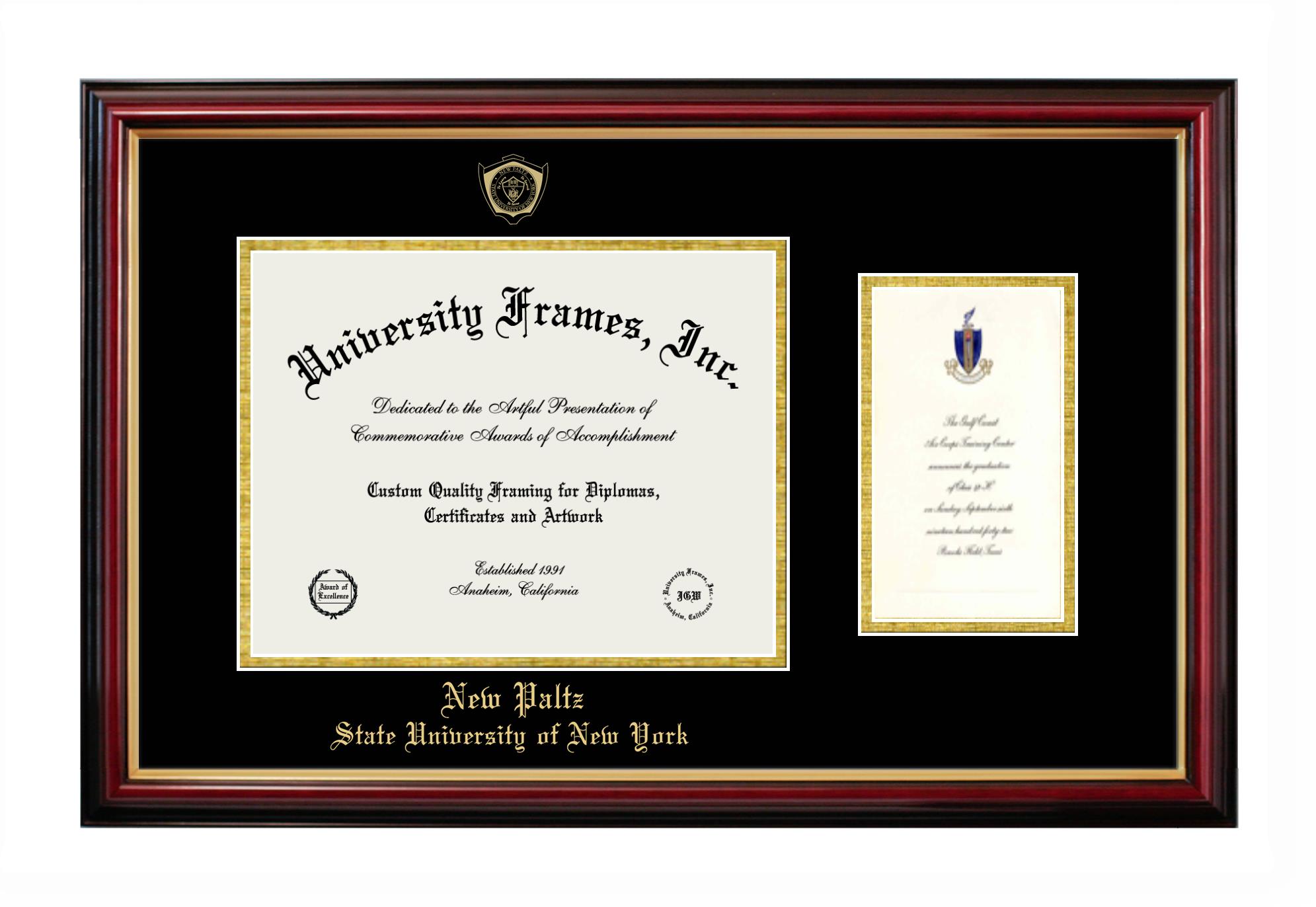 Want a professional diploma frame to showcase your achievement? Or are you looking for a fantastic graduation gift for a new grad or alum? Our official State University of New York at New Paltz diploma frames are the best option to showcase any well-deserved diploma. Handcrafted in the USA, our best-in-class degree frames are custom-designed for the official State University of New York at New Paltz diploma. You can customize your frame with our hassle-free online design tool. Start customizing your diploma frame now!