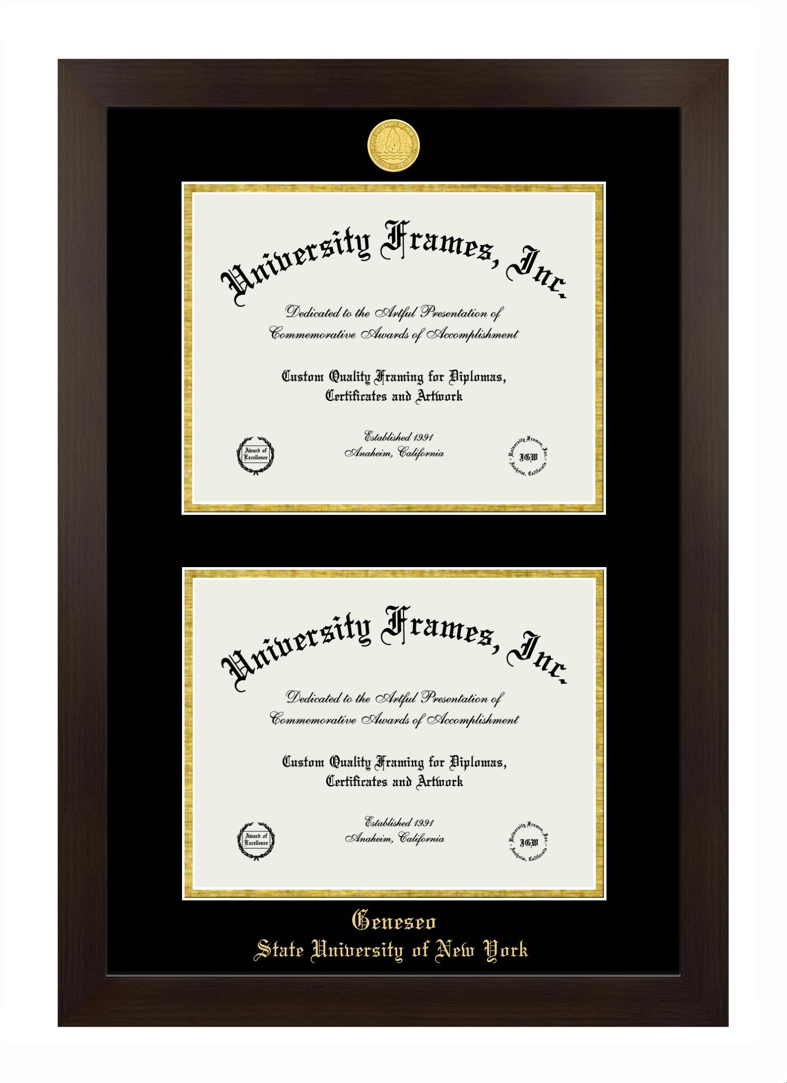 Want a professional diploma frame to showcase your achievement? Or are you looking for a fantastic graduation gift for a new grad or alum? Our official State University of New York Geneseo diploma frames are the best option to showcase any well-deserved diploma. Handcrafted in the USA, our best-in-class degree frames are custom-designed for the official State University of New York Geneseo diploma. You can customize your frame with our hassle-free online design tool. Start customizing your diploma frame now!