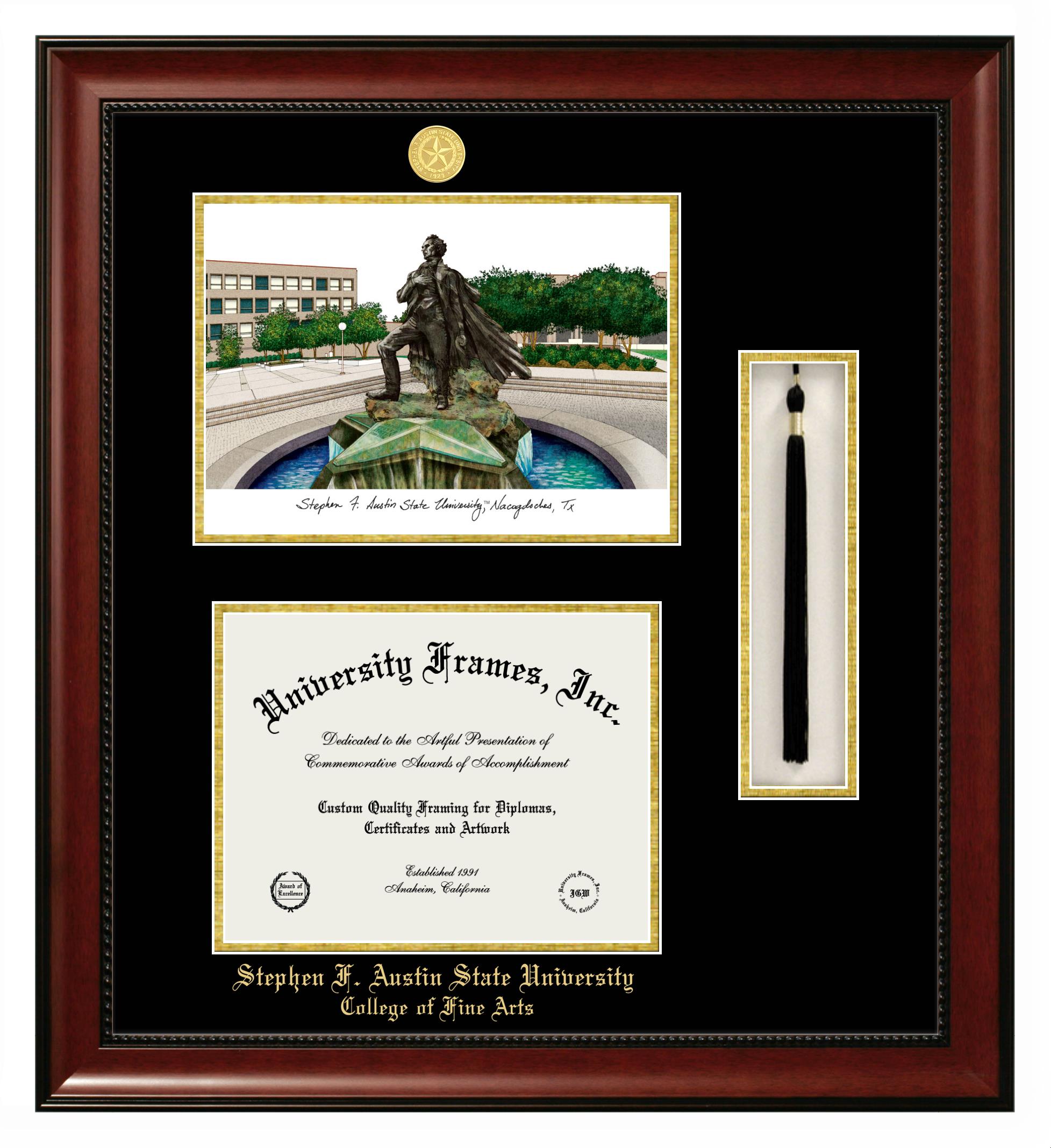 Want a professional diploma frame to showcase your achievement? Or are you looking for a fantastic graduation gift for a new grad or alum? Our official Stephen F. Austin State University College of Fine Arts diploma frames are the best option to showcase any well-deserved diploma. Handcrafted in the USA, our best-in-class degree frames are custom-designed for the official Stephen F. Austin State University College of Fine Arts diploma. You can customize your frame with our hassle-free online design tool. Start customizing your diploma frame now!