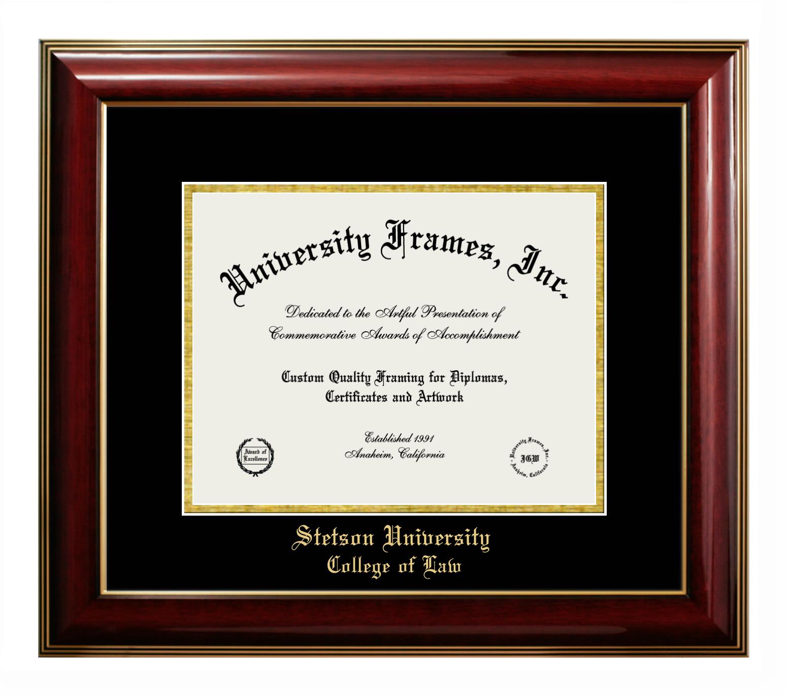 Hey there, Stetson University College of Law grads. Congratulations for your accomplishment! Since you’re here, you must be looking for a professional graduation frame to preserve and showcase your Stetson University College of Law diploma. Or, you may be looking for a diploma frame for another grad. We at University Frames, create the finest diploma frames and are licensed with Stetson University College of Law. Each of our degree frames is handcrafted in the US using the finest hardwood and with an exemplary level of attention to detail. Customize your diploma frame using our easy and intuitive online design tool.