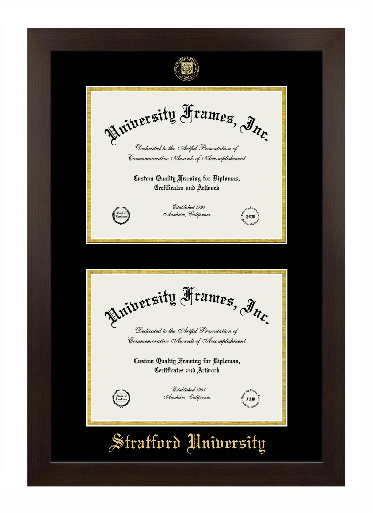 Hey there, Stratford University grads. Congratulations for your accomplishment! Since youโre here, you must be looking for a professional graduation frame to preserve and showcase your Stratford University diploma. Or, you may be looking for a diploma frame for another grad. We at University Frames, create the finest diploma frames and are licensed with Stratford University. Each of our degree frames is handcrafted in the US using the finest hardwood and with an exemplary level of attention to detail. Customize your diploma frame using our easy and intuitive online design tool.