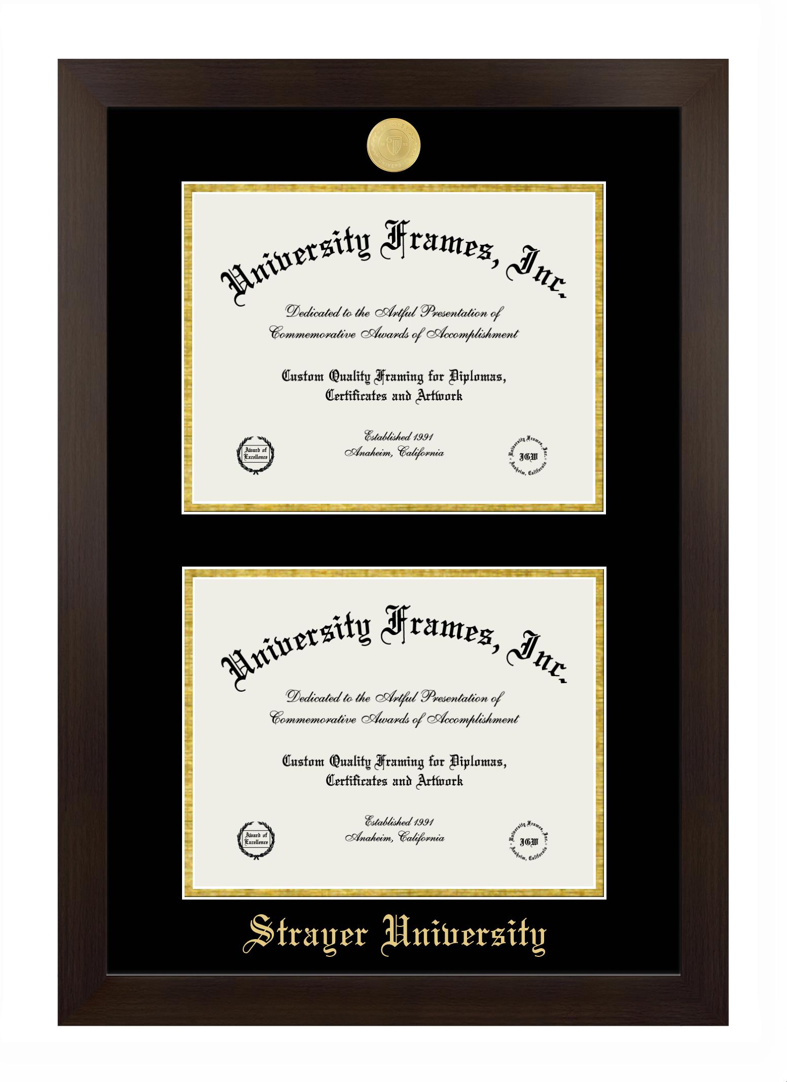Want a professional diploma frame to showcase your achievement? Or are you looking for a fantastic graduation gift for a new grad or alum? Our official Strayer University diploma frames are the best option to showcase any well-deserved diploma. Handcrafted in the USA, our best-in-class degree frames are custom-designed for the official Strayer University diploma. You can customize your frame with our hassle-free online design tool. Start customizing your diploma frame now!
