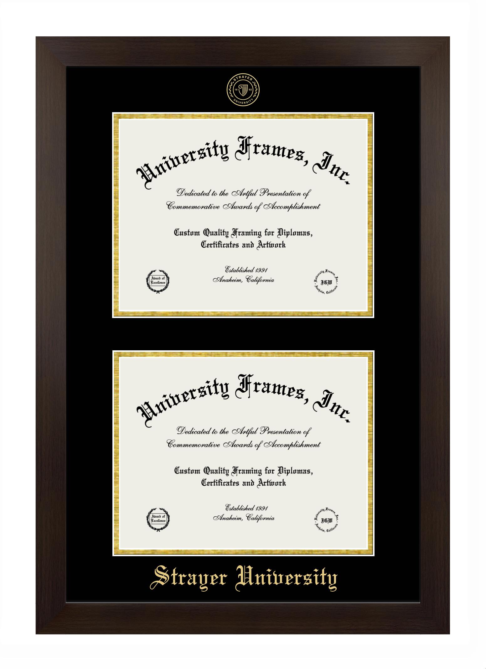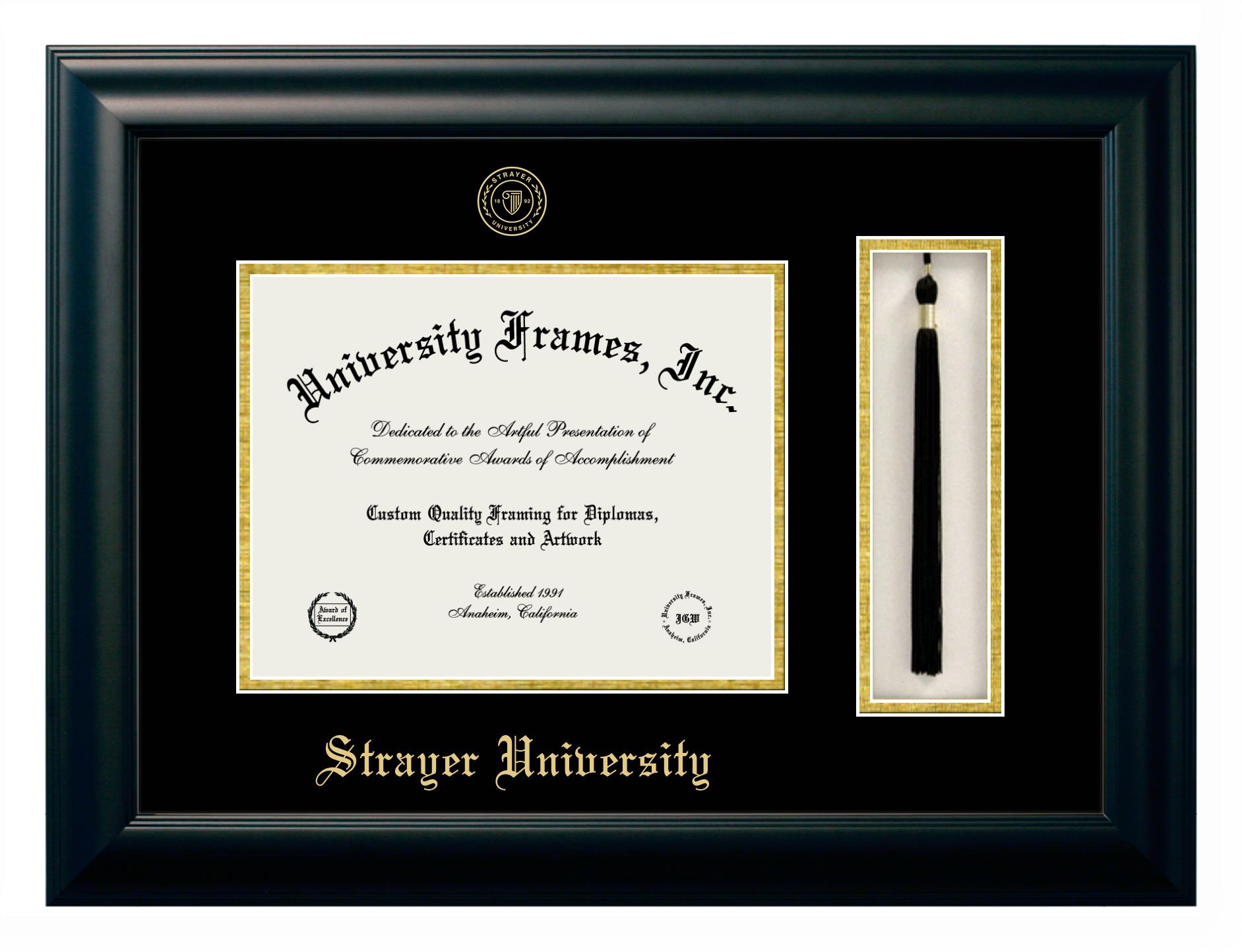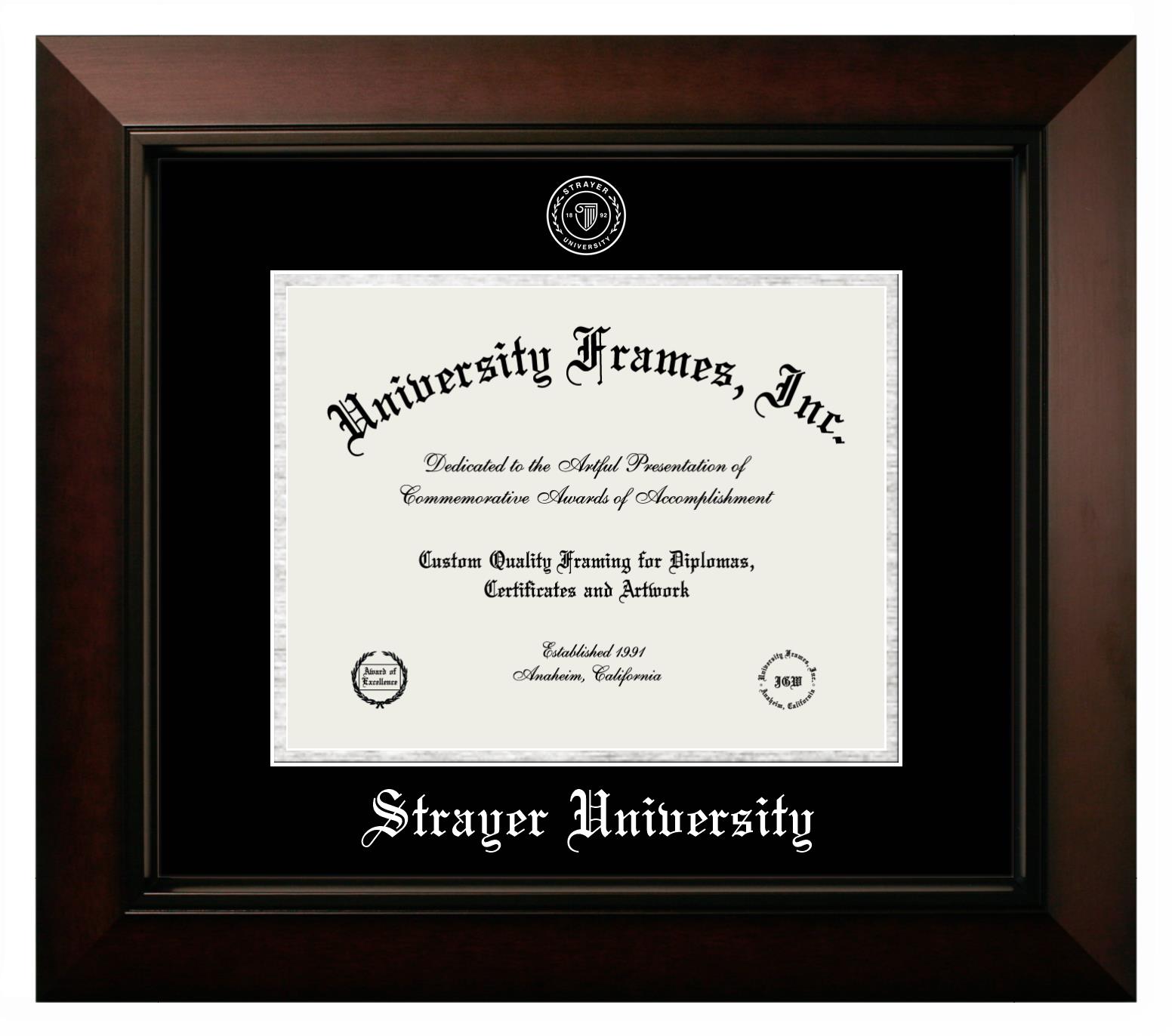 Want a professional diploma frame to showcase your achievement? Or are you looking for a fantastic graduation gift for a new grad or alum? Our official Strayer University diploma frames are the best option to showcase any well-deserved diploma. Handcrafted in the USA, our best-in-class degree frames are custom-designed for the official Strayer University diploma. You can customize your frame with our hassle-free online design tool. Start customizing your diploma frame now!