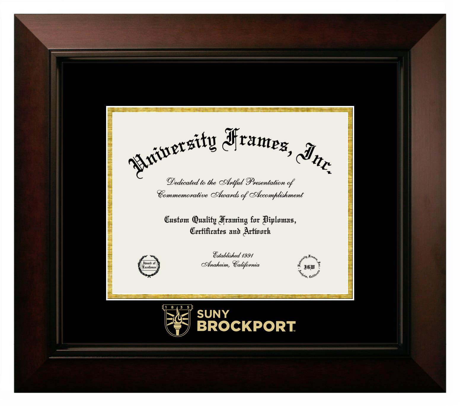 If you are a recent SUNY Brockport Wordmark graduate or an alum looking for a professional diploma frame to show off your accomplishment, look no further. We provide officially licensed custom diploma frames that come with the original SUNY Brockport Wordmark seal. Our handcrafted degree frames make an ideal graduation gift for any SUNY Brockport Wordmark recent graduate or alum. Each diploma frame is carefully crafted and inspected for quality and precision. Our graduation frames can be easily customized according to your taste and preference. Customize your college diploma frame now!