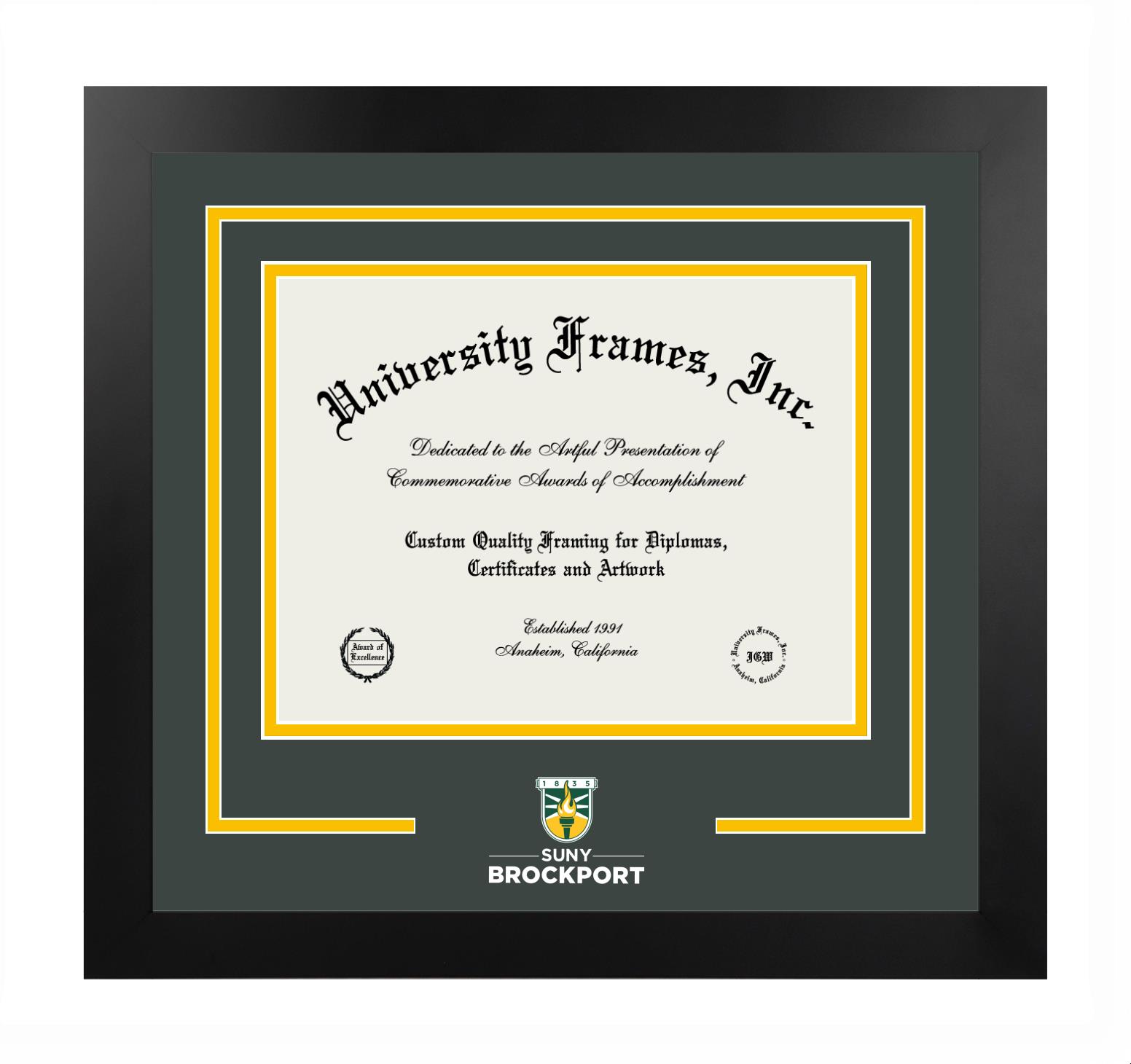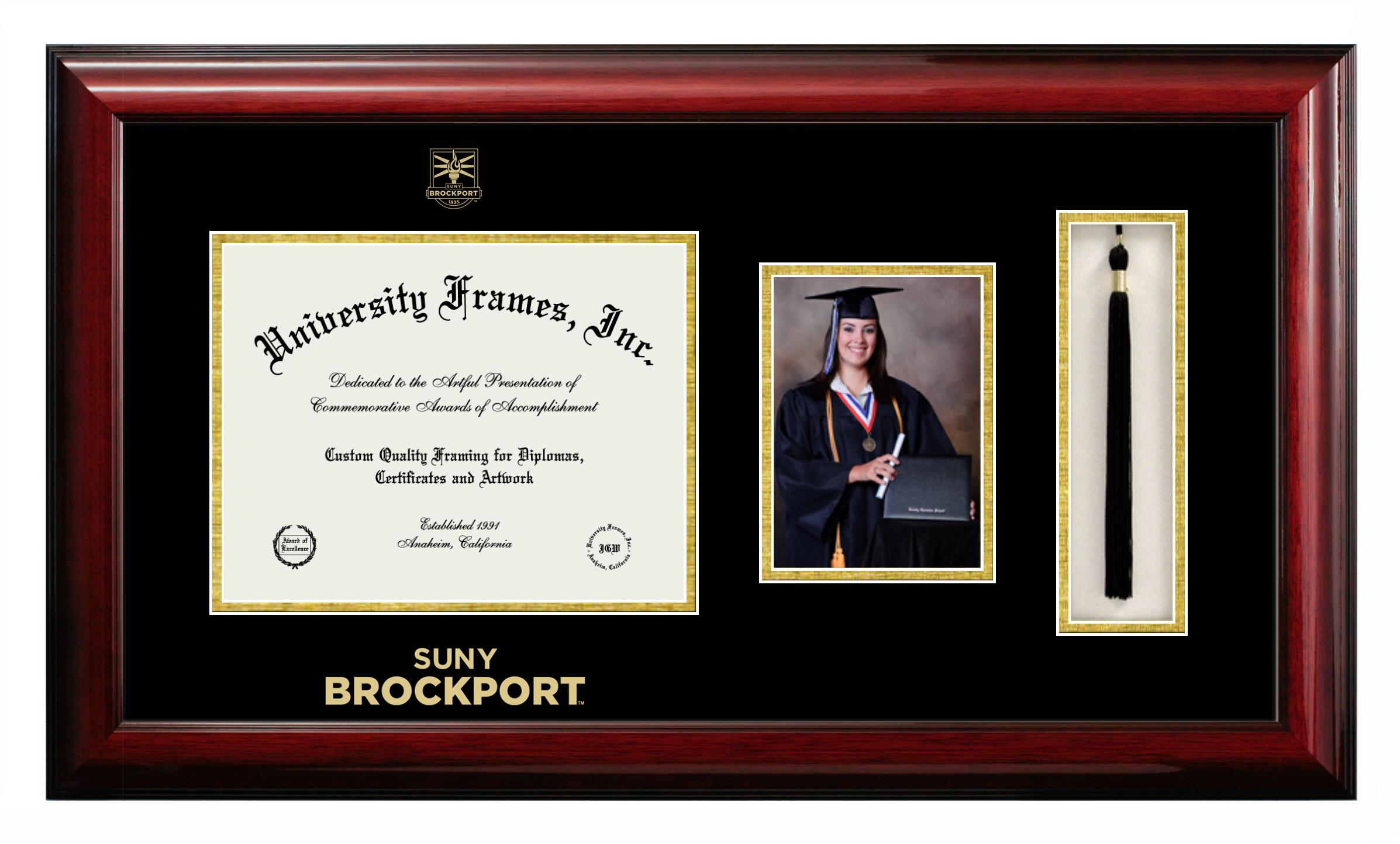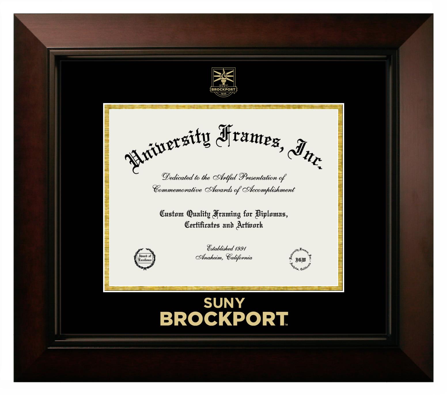 If you are a recent SUNY Brockport graduate or an alum looking for a professional diploma frame to show off your accomplishment, look no further. We provide officially licensed custom diploma frames that come with the original SUNY Brockport seal. Our handcrafted degree frames make an ideal graduation gift for any SUNY Brockport recent graduate or alum. Each diploma frame is carefully crafted and inspected for quality and precision. Our graduation frames can be easily customized according to your taste and preference. Customize your college diploma frame now!