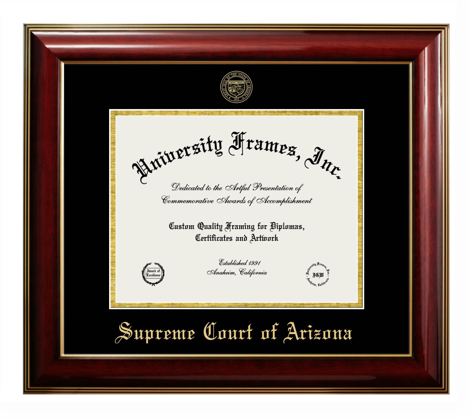 Want a professional diploma frame to showcase your achievement? Or are you looking for a fantastic graduation gift for a new grad or alum? Our official Supreme Court of Arizona diploma frames are the best option to showcase any well-deserved diploma. Handcrafted in the USA, our best-in-class degree frames are custom-designed for the official Supreme Court of Arizona diploma. You can customize your frame with our hassle-free online design tool. Start customizing your diploma frame now!