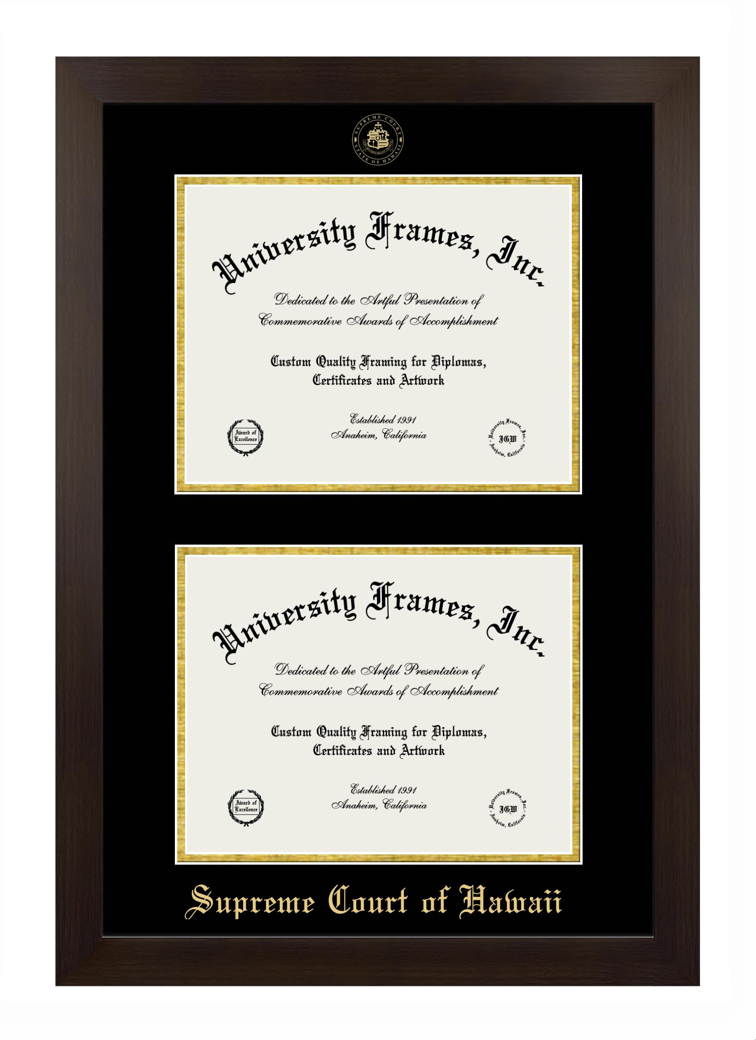 Want a professional diploma frame to showcase your achievement? Or are you looking for a fantastic graduation gift for a new grad or alum? Our official Supreme Court of Hawaii diploma frames are the best option to showcase any well-deserved diploma. Handcrafted in the USA, our best-in-class degree frames are custom-designed for the official Supreme Court of Hawaii diploma. You can customize your frame with our hassle-free online design tool. Start customizing your diploma frame now!