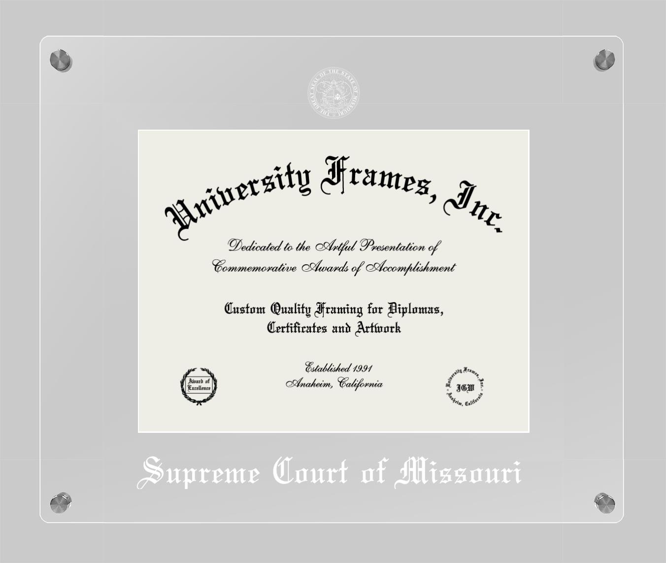 Want a professional diploma frame to showcase your achievement? Or are you looking for a fantastic graduation gift for a new grad or alum? Our official Supreme Court of Missouri diploma frames are the best option to showcase any well-deserved diploma. Handcrafted in the USA, our best-in-class degree frames are custom-designed for the official Supreme Court of Missouri diploma. You can customize your frame with our hassle-free online design tool. Start customizing your diploma frame now!