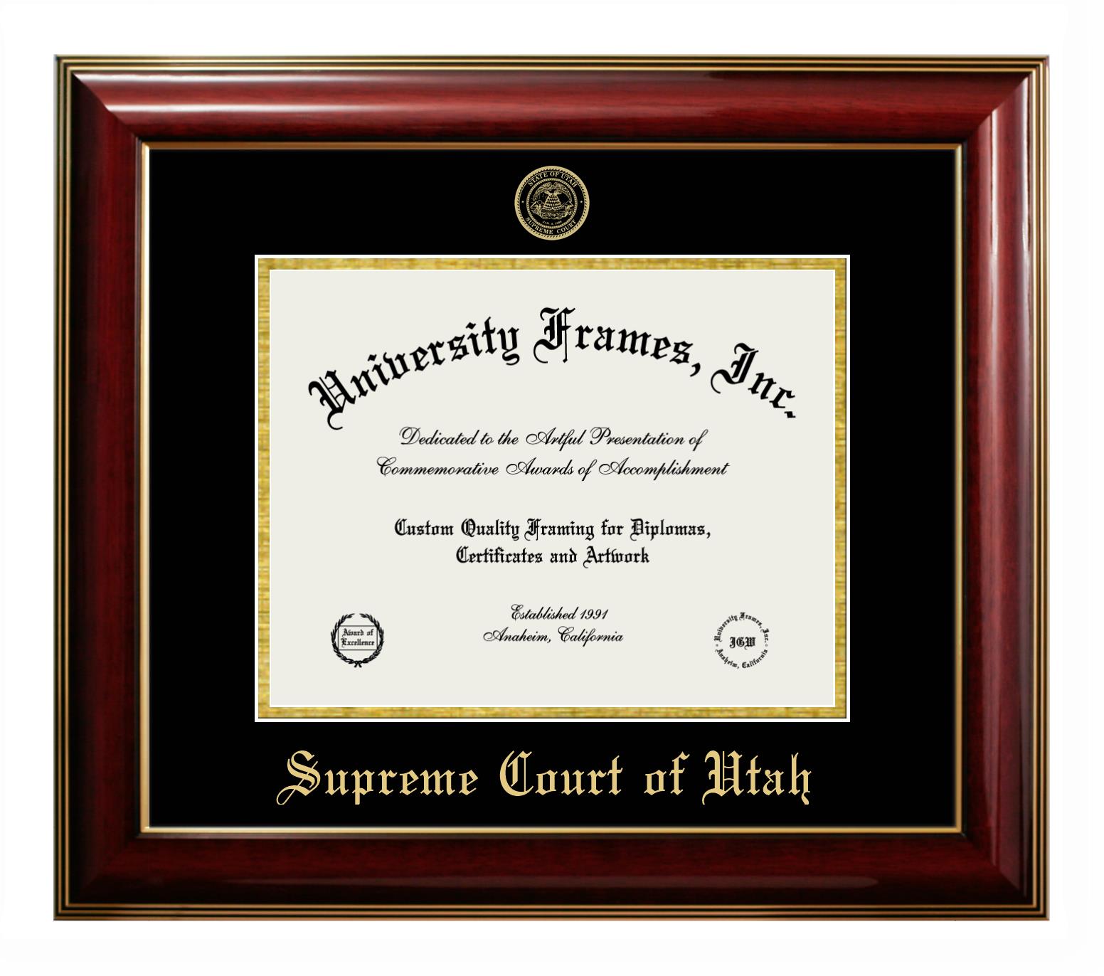 Want a professional diploma frame to showcase your achievement? Or are you looking for a fantastic graduation gift for a new grad or alum? Our official Supreme Court of Utah diploma frames are the best option to showcase any well-deserved diploma. Handcrafted in the USA, our best-in-class degree frames are custom-designed for the official Supreme Court of Utah diploma. You can customize your frame with our hassle-free online design tool. Start customizing your diploma frame now!