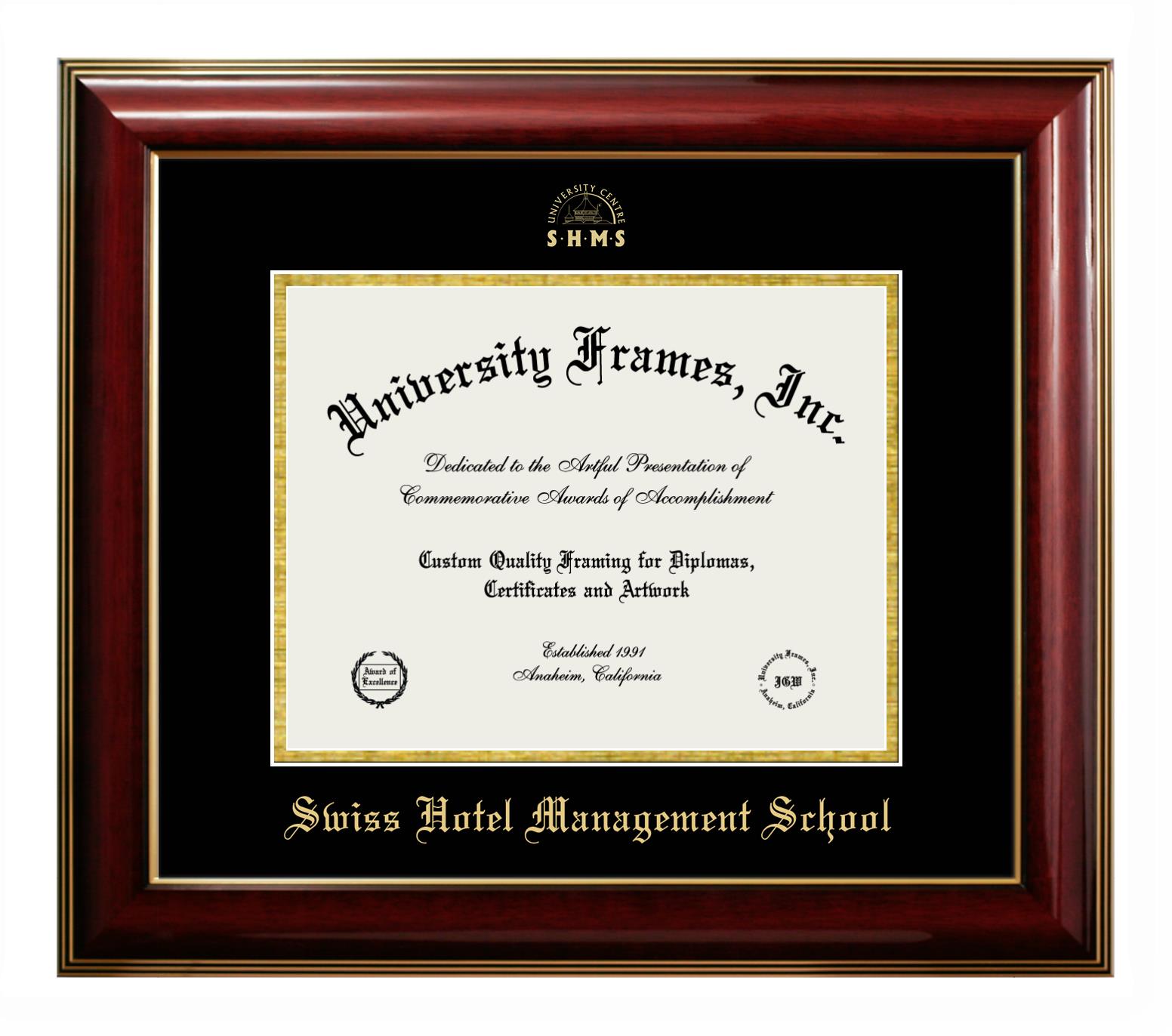 Want a professional diploma frame to showcase your achievement? Or are you looking for a fantastic graduation gift for a new grad or alum? Our official Swiss Hotel Management School diploma frames are the best option to showcase any well-deserved diploma. Handcrafted in the USA, our best-in-class degree frames are custom-designed for the official Swiss Hotel Management School diploma. You can customize your frame with our hassle-free online design tool. Start customizing your diploma frame now!