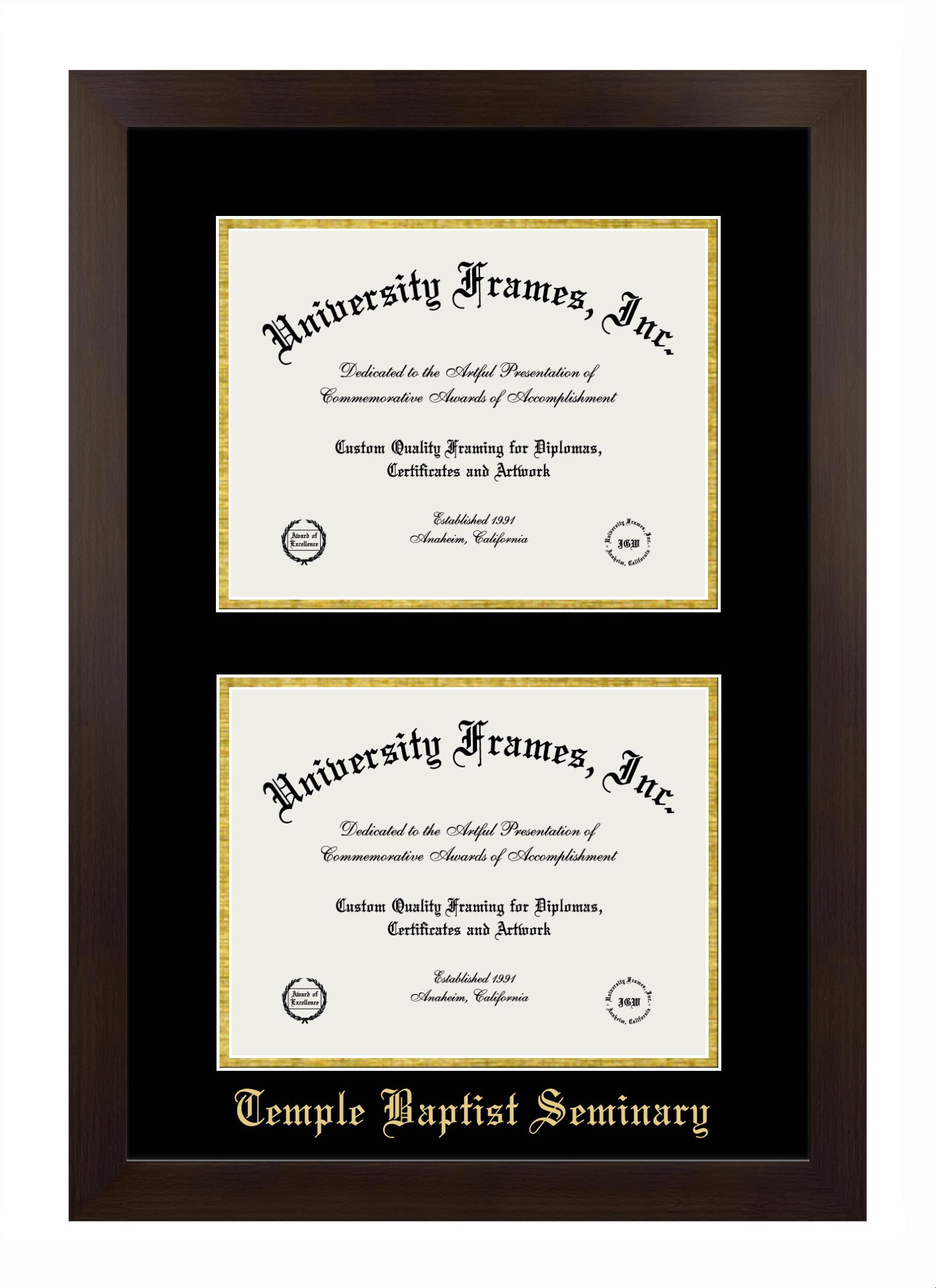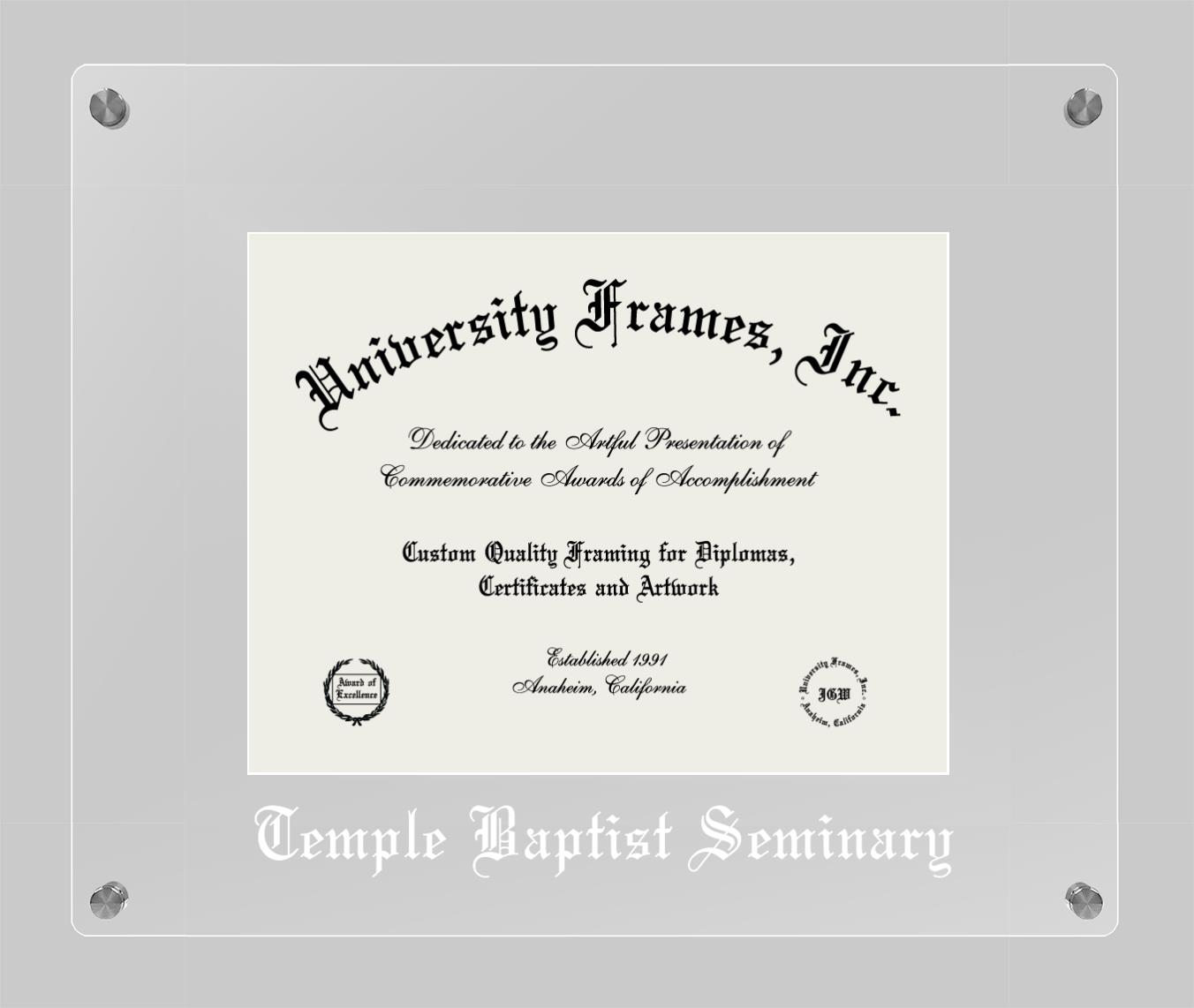 Want a professional diploma frame to showcase your achievement? Or are you looking for a fantastic graduation gift for a new grad or alum? Our official Temple Baptist Seminary diploma frames are the best option to showcase any well-deserved diploma. Handcrafted in the USA, our best-in-class degree frames are custom-designed for the official Temple Baptist Seminary diploma. You can customize your frame with our hassle-free online design tool. Start customizing your diploma frame now!