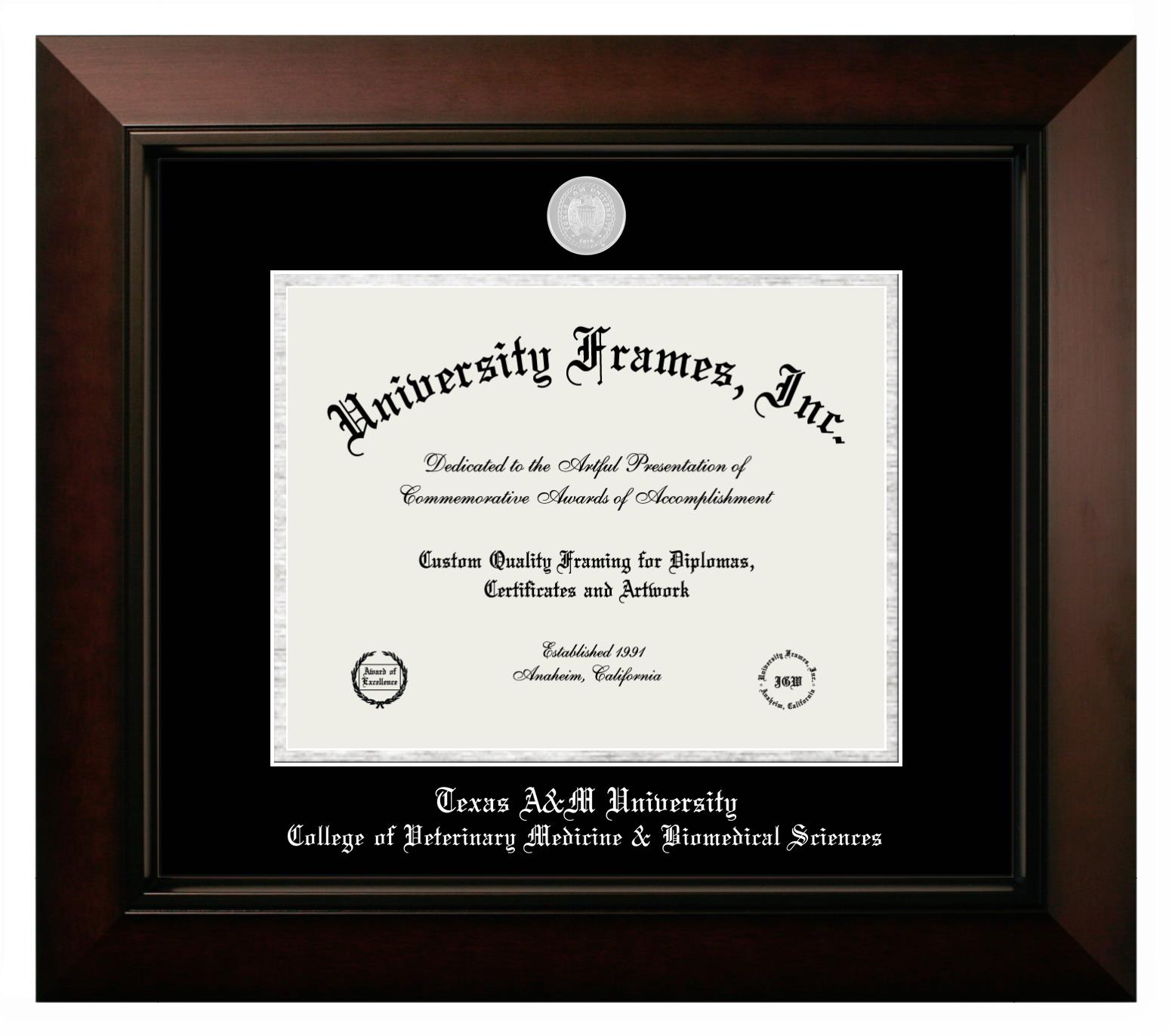 Want a professional diploma frame to showcase your achievement? Or are you looking for a fantastic graduation gift for a new grad or alum? Our official Texas A&M University College of Veterinary Medicine & Biomedical Sciences diploma frames are the best option to showcase any well-deserved diploma. Handcrafted in the USA, our best-in-class degree frames are custom-designed for the official Texas A&M University College of Veterinary Medicine & Biomedical Sciences diploma. You can customize your frame with our hassle-free online design tool. Start customizing your diploma frame now!