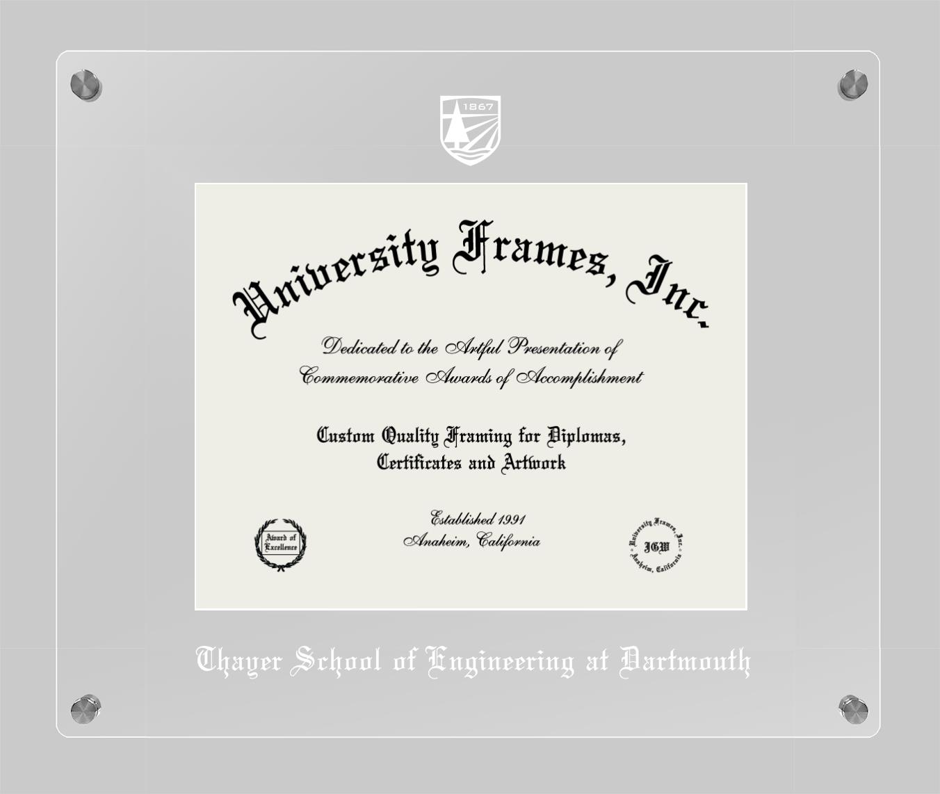 Want a professional diploma frame to showcase your achievement? Or are you looking for a fantastic graduation gift for a new grad or alum? Our official Thayer School of Engineering at Dartmouth diploma frames are the best option to showcase any well-deserved diploma. Handcrafted in the USA, our best-in-class degree frames are custom-designed for the official Thayer School of Engineering at Dartmouth diploma. You can customize your frame with our hassle-free online design tool. Start customizing your diploma frame now!