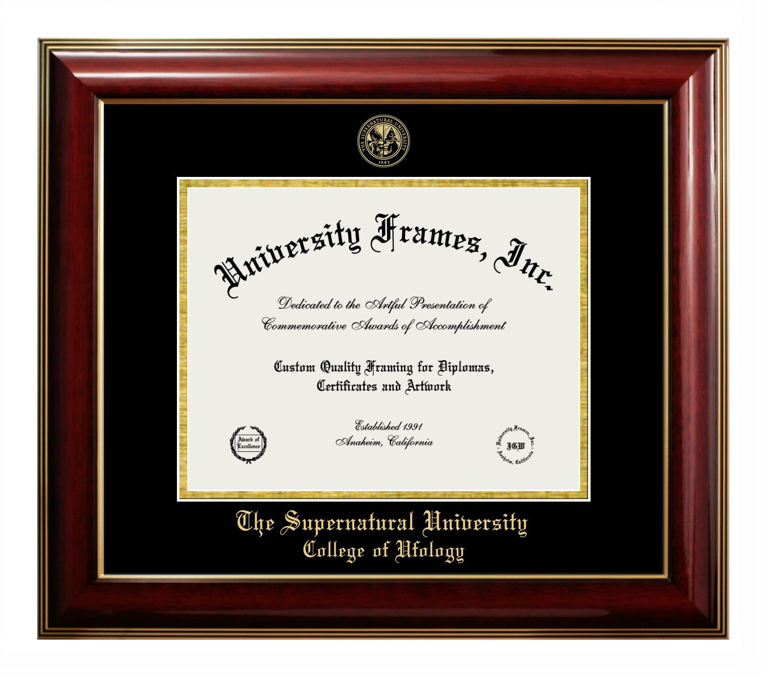Are you a The Supernatural University College of Ufology graduate looking for an officially licensed diploma frame to showcase your achievement? Or, are you looking for a unique graduation gift for a recent The Supernatural University College of Ufology graduate or alum? You have come to the right place! Our officially licensed custom diploma frames have the original seal of The Supernatural University College of Ufology. Each of our degree frames is handcrafted to offer the highest quality and precision. You can easily customize your graduation frames according to your style and preference. Start customizing your college diploma frame now!