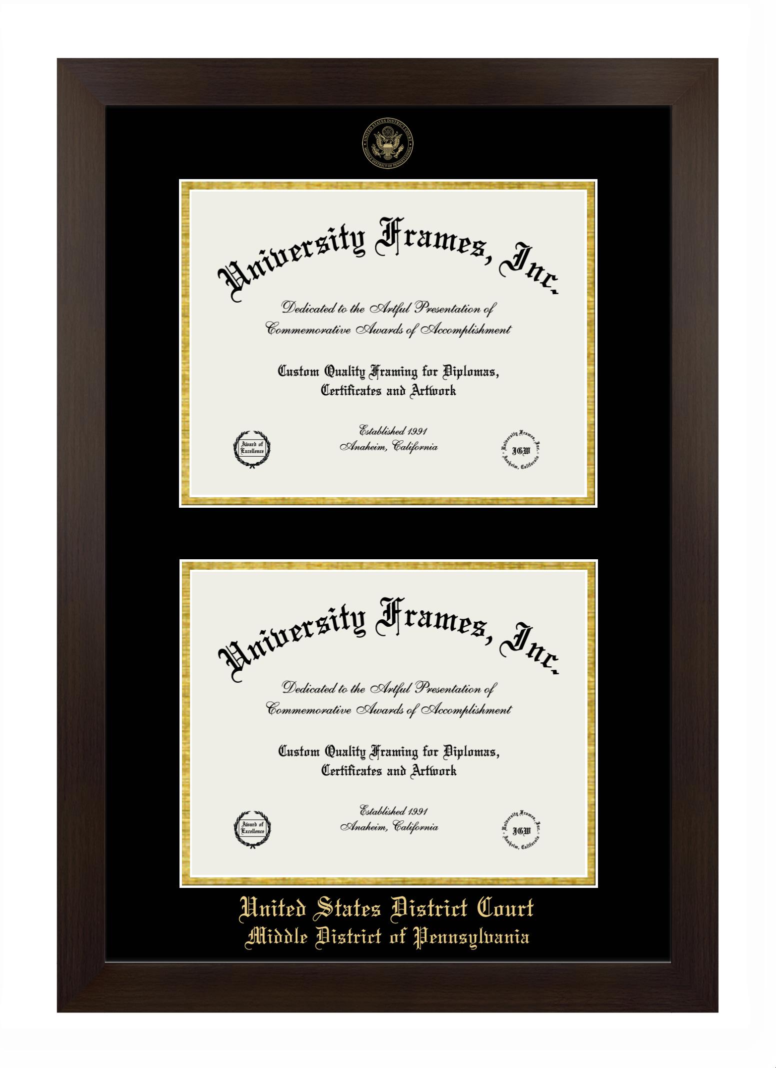 Are you a recent United States District Court Middle District of Pennsylvania graduate or are you looking for a special graduation gift idea for a recent grad? Our official United States District Court Middle District of Pennsylvania diploma frames and degree frames are perfect for preserving and displaying any hard-earned diploma. Our custom diploma frames are specifically made with the official United States District Court Middle District of Pennsylvania seal and are handcrafted with the utmost attention to detail. Start building your graduation frame now!