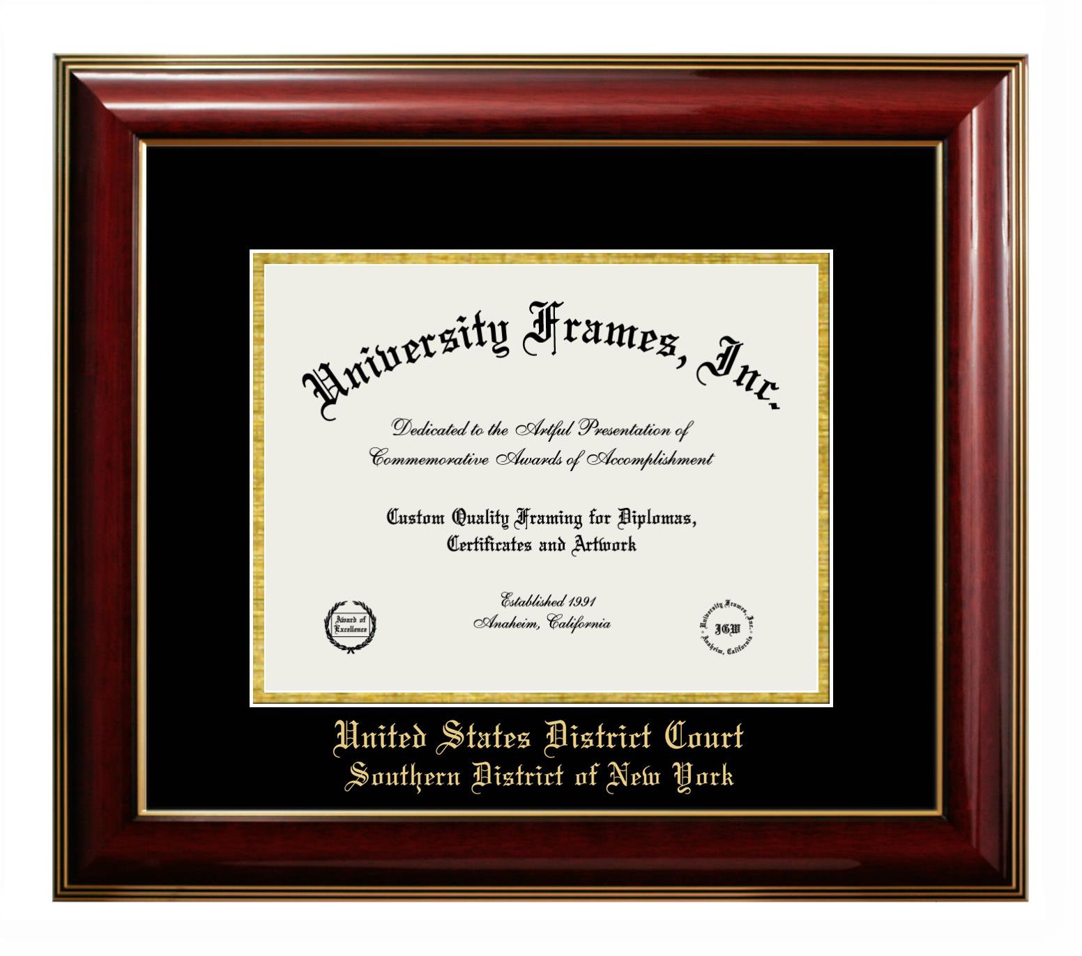 Are you a recent United States District Court Southern District of New York graduate or are you looking for a special graduation gift idea for a recent grad? Our official United States District Court Southern District of New York diploma frames and degree frames are perfect for preserving and displaying any hard-earned diploma. Our custom diploma frames are specifically made with the official United States District Court Southern District of New York seal and are handcrafted with the utmost attention to detail. Start building your graduation frame now!