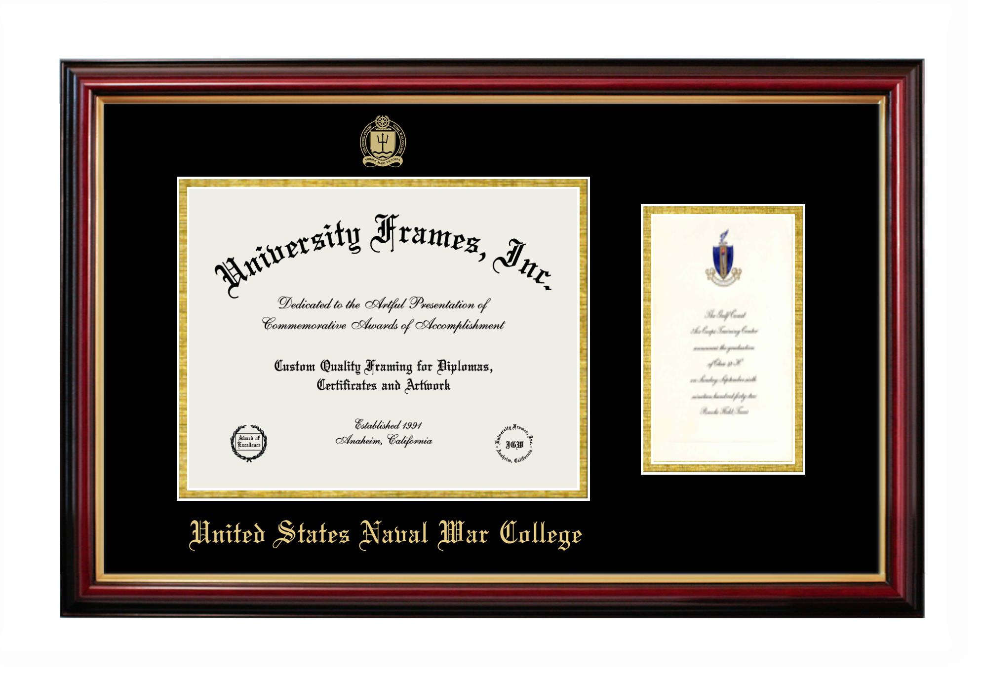 Are you a recent United States Naval War College graduate or are you looking for a special graduation gift idea for a recent grad? Our official United States Naval War College diploma frames and degree frames are perfect for preserving and displaying any hard-earned diploma. Our custom diploma frames are specifically made with the official United States Naval War College seal and are handcrafted with the utmost attention to detail. Start building your graduation frame now!