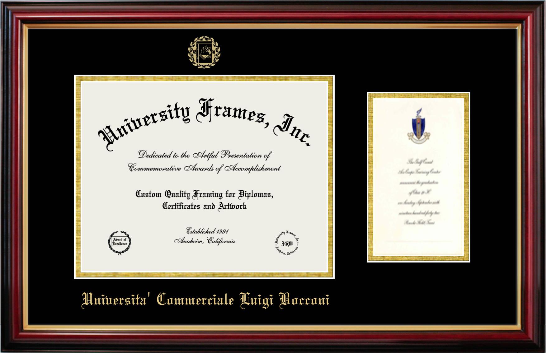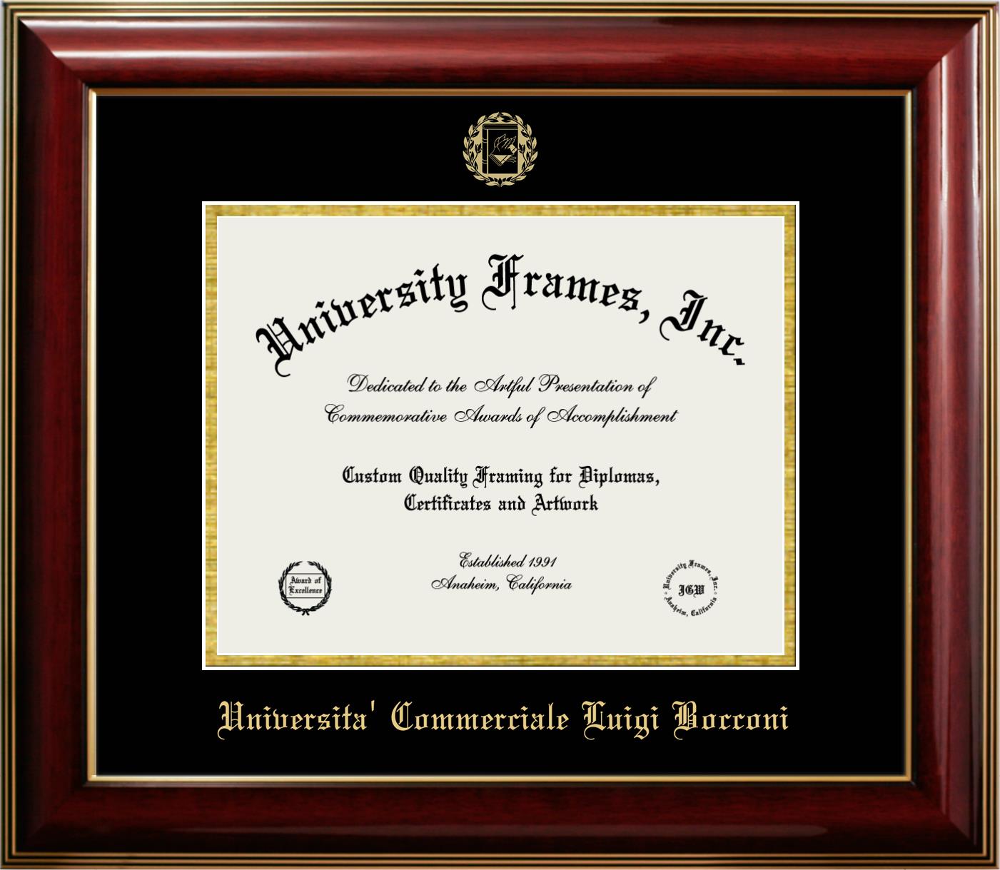 Are you a recent Universita Commerciale Luigi Bocconi graduate or are you looking for a special graduation gift idea for a recent grad? Our official Universita Commerciale Luigi Bocconi diploma frames and degree frames are perfect for preserving and displaying any hard-earned diploma. Our custom diploma frames are specifically made with the official Universita Commerciale Luigi Bocconi seal and are handcrafted with the utmost attention to detail. Start building your graduation frame now!