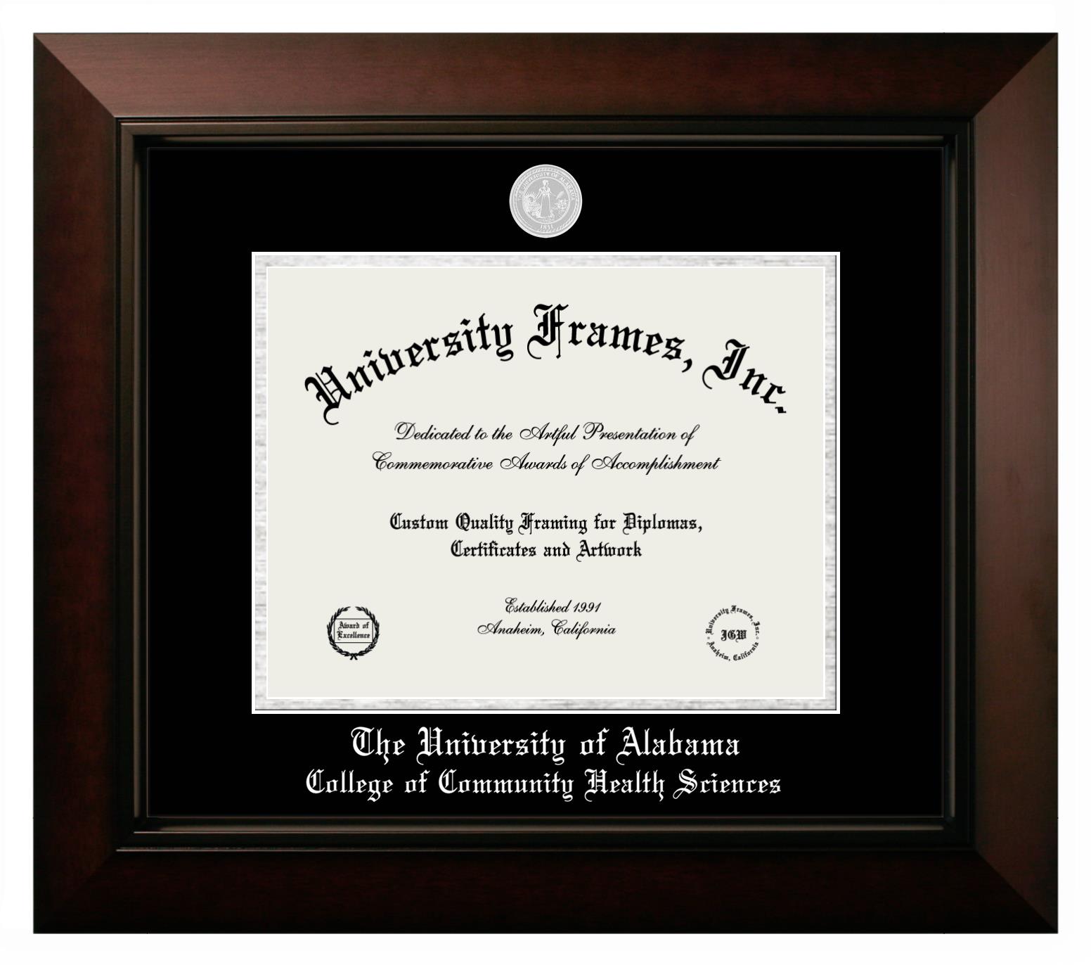Are you a recent University of Alabama (Tuscaloosa) College of Community Health Sciences graduate or are you looking for a special graduation gift idea for a recent grad? Our official University of Alabama (Tuscaloosa) College of Community Health Sciences diploma frames and degree frames are perfect for preserving and displaying any hard-earned diploma. Our custom diploma frames are specifically made with the official University of Alabama (Tuscaloosa) College of Community Health Sciences seal and are handcrafted with the utmost attention to detail. Start building your graduation frame now!