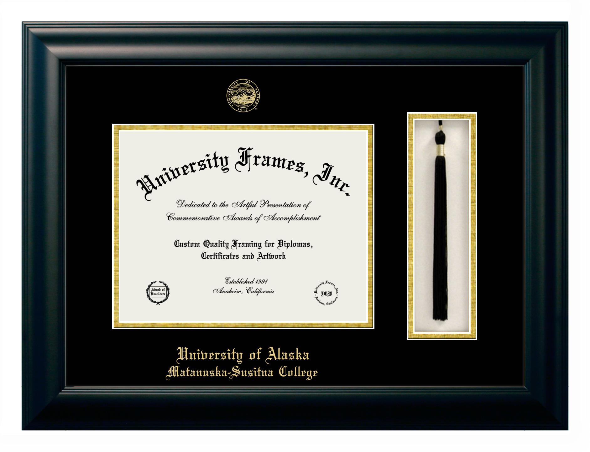 Are you a recent University of Alaska Matanuska-Susitna College graduate or are you looking for a special graduation gift idea for a recent grad? Our official University of Alaska Matanuska-Susitna College diploma frames and degree frames are perfect for preserving and displaying any hard-earned diploma. Our custom diploma frames are specifically made with the official University of Alaska Matanuska-Susitna College seal and are handcrafted with the utmost attention to detail. Start building your graduation frame now!