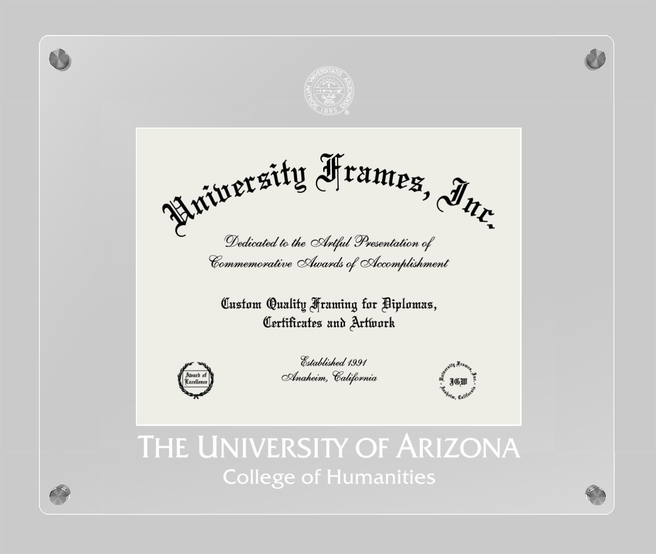Are you a recent University of Arizona College of Humanities graduate or are you looking for a special graduation gift idea for a recent grad? Our official University of Arizona College of Humanities diploma frames and degree frames are perfect for preserving and displaying any hard-earned diploma. Our custom diploma frames are specifically made with the official University of Arizona College of Humanities seal and are handcrafted with the utmost attention to detail. Start building your graduation frame now!