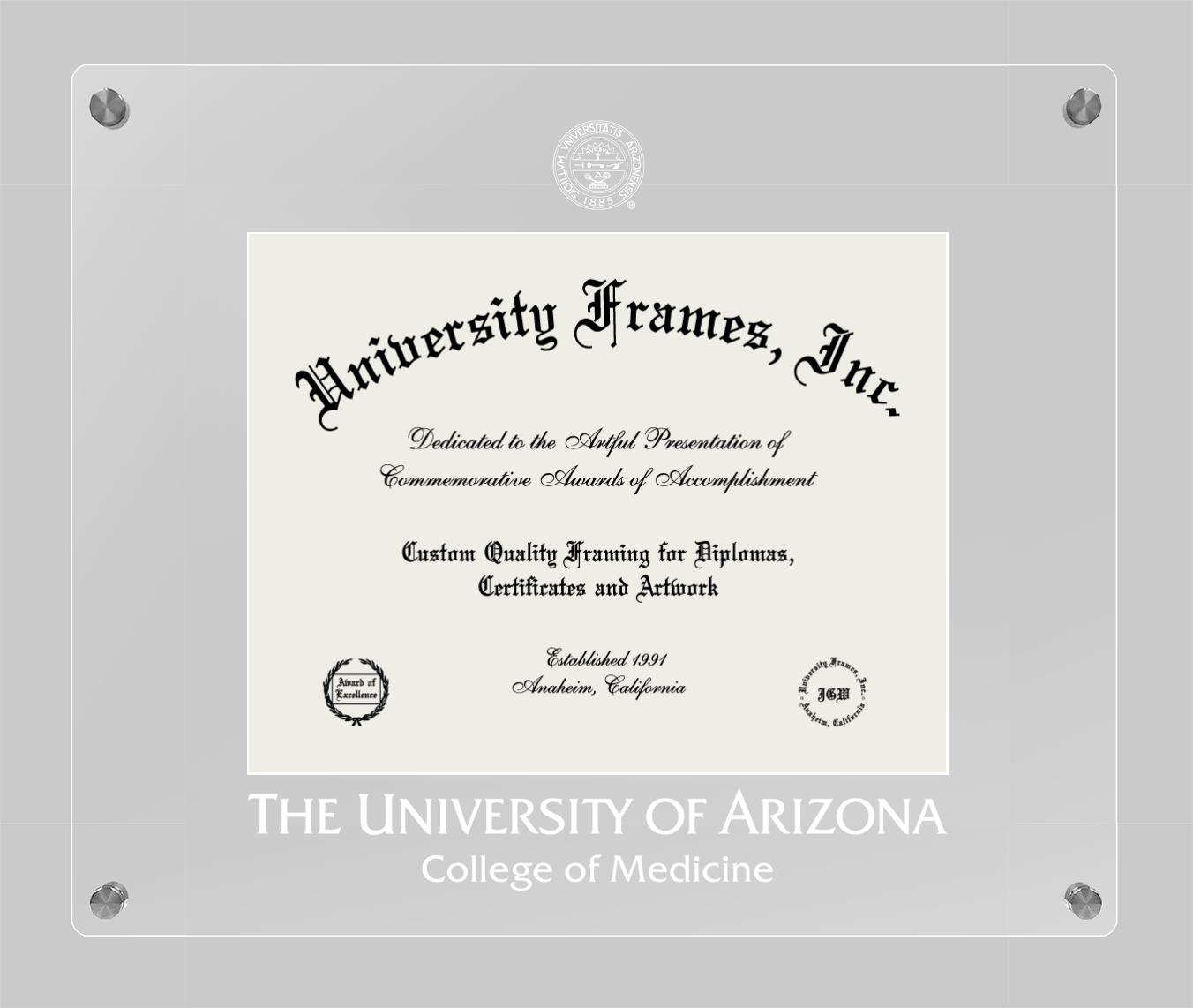 Are you a recent University of Arizona College of Medicine graduate or are you looking for a special graduation gift idea for a recent grad? Our official University of Arizona College of Medicine diploma frames and degree frames are perfect for preserving and displaying any hard-earned diploma. Our custom diploma frames are specifically made with the official University of Arizona College of Medicine seal and are handcrafted with the utmost attention to detail. Start building your graduation frame now!