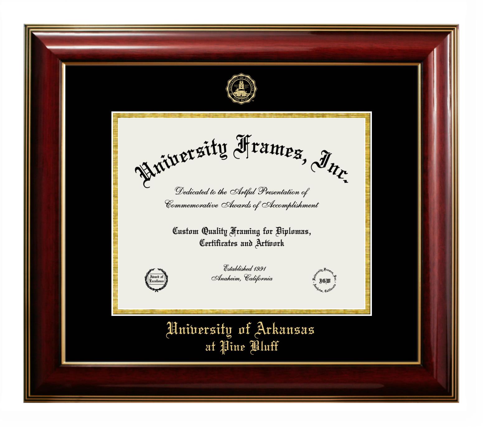 Are you a recent University of Arkansas at Pine Bluff graduate or are you looking for a special graduation gift idea for a recent grad? Our official University of Arkansas at Pine Bluff diploma frames and degree frames are perfect for preserving and displaying any hard-earned diploma. Our custom diploma frames are specifically made with the official University of Arkansas at Pine Bluff seal and are handcrafted with the utmost attention to detail. Start building your graduation frame now!