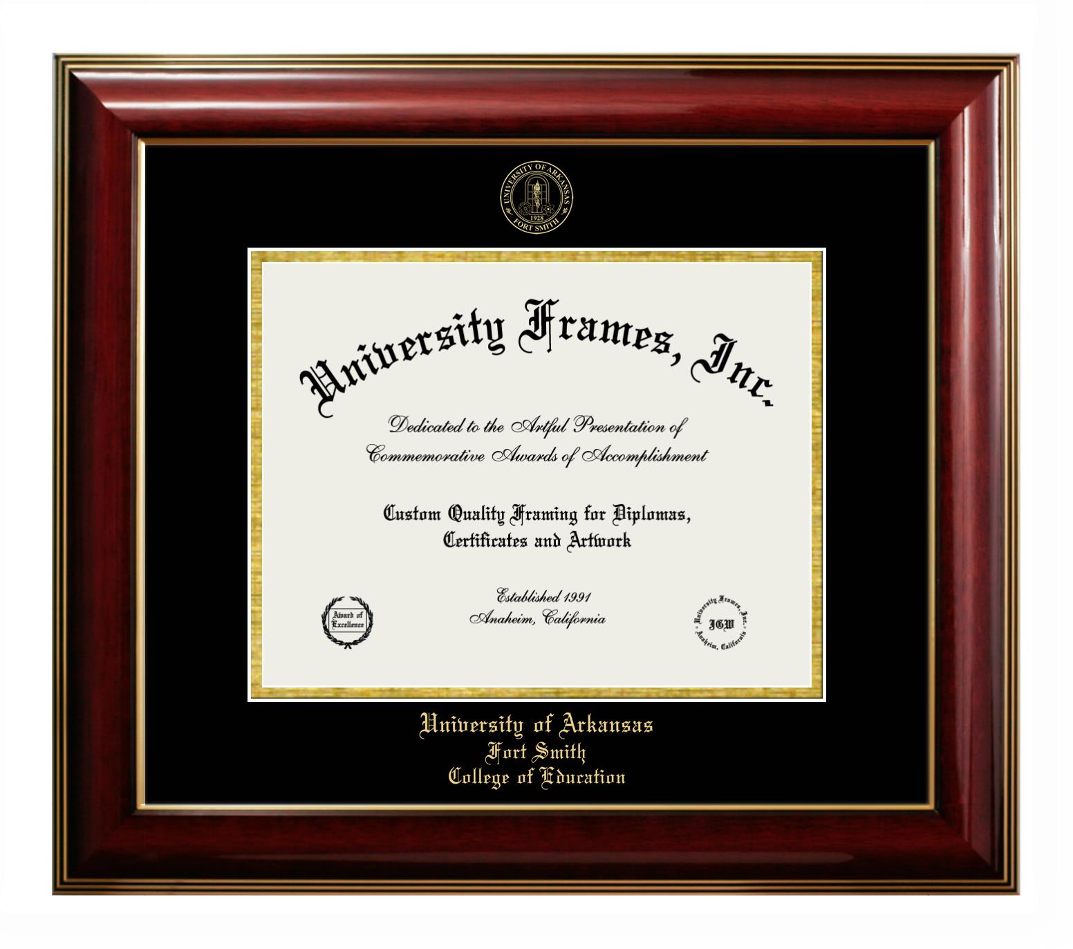 Are you a recent University of Arkansas Fort Smith College of Education graduate or are you looking for a special graduation gift idea for a recent grad? Our official University of Arkansas Fort Smith College of Education diploma frames and degree frames are perfect for preserving and displaying any hard-earned diploma. Our custom diploma frames are specifically made with the official University of Arkansas Fort Smith College of Education seal and are handcrafted with the utmost attention to detail. Start building your graduation frame now!