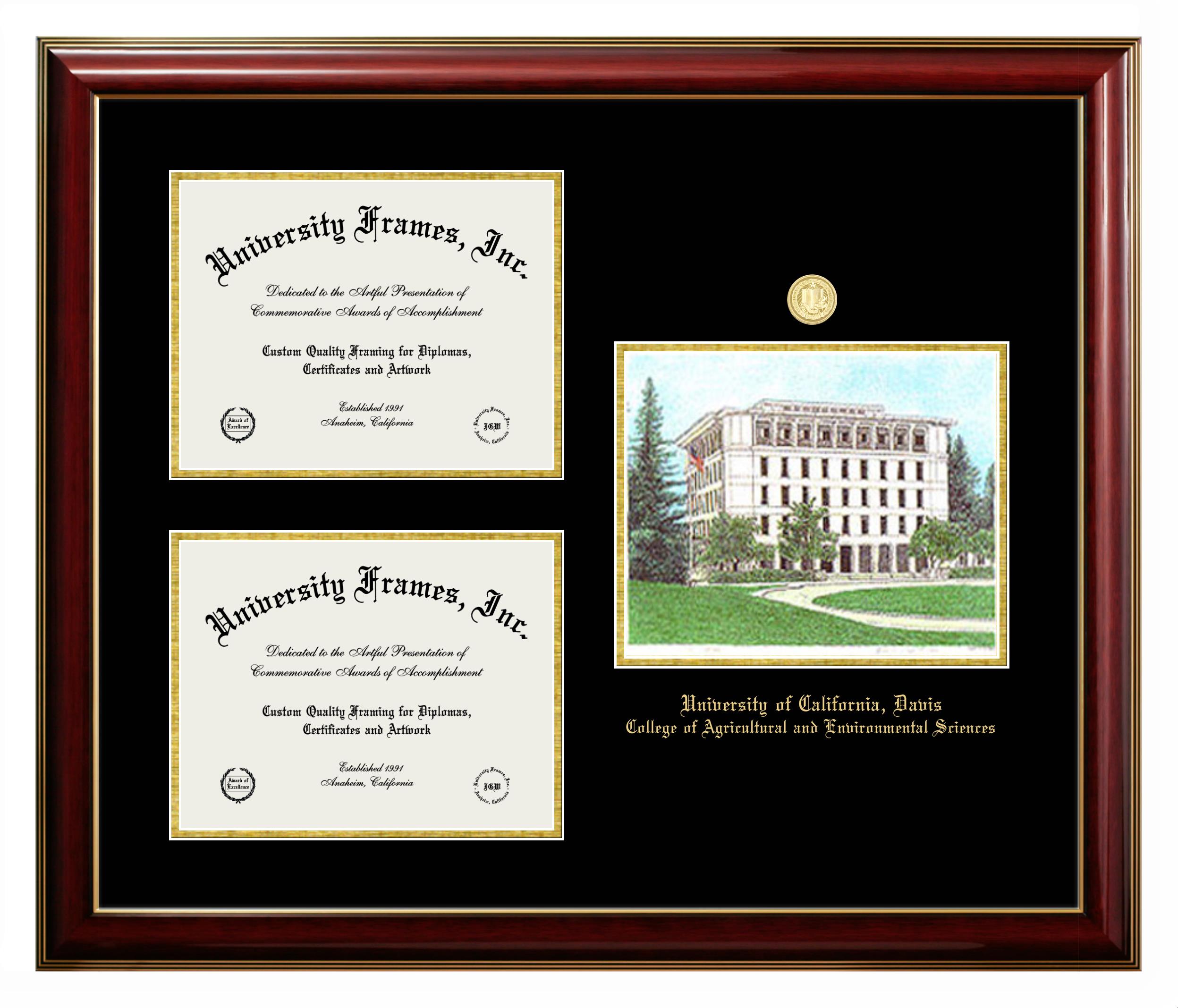 Are you a recent University of California Davis College of Agricultural and Environmental Sciences graduate or are you looking for a special graduation gift idea for a recent grad? Our official University of California Davis College of Agricultural and Environmental Sciences diploma frames and degree frames are perfect for preserving and displaying any hard-earned diploma. Our custom diploma frames are specifically made with the official University of California Davis College of Agricultural and Environmental Sciences seal and are handcrafted with the utmost attention to detail. Start building your graduation frame now!