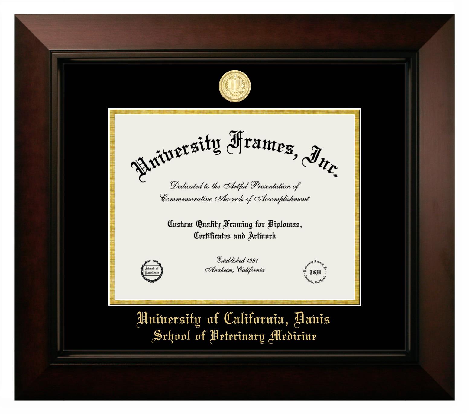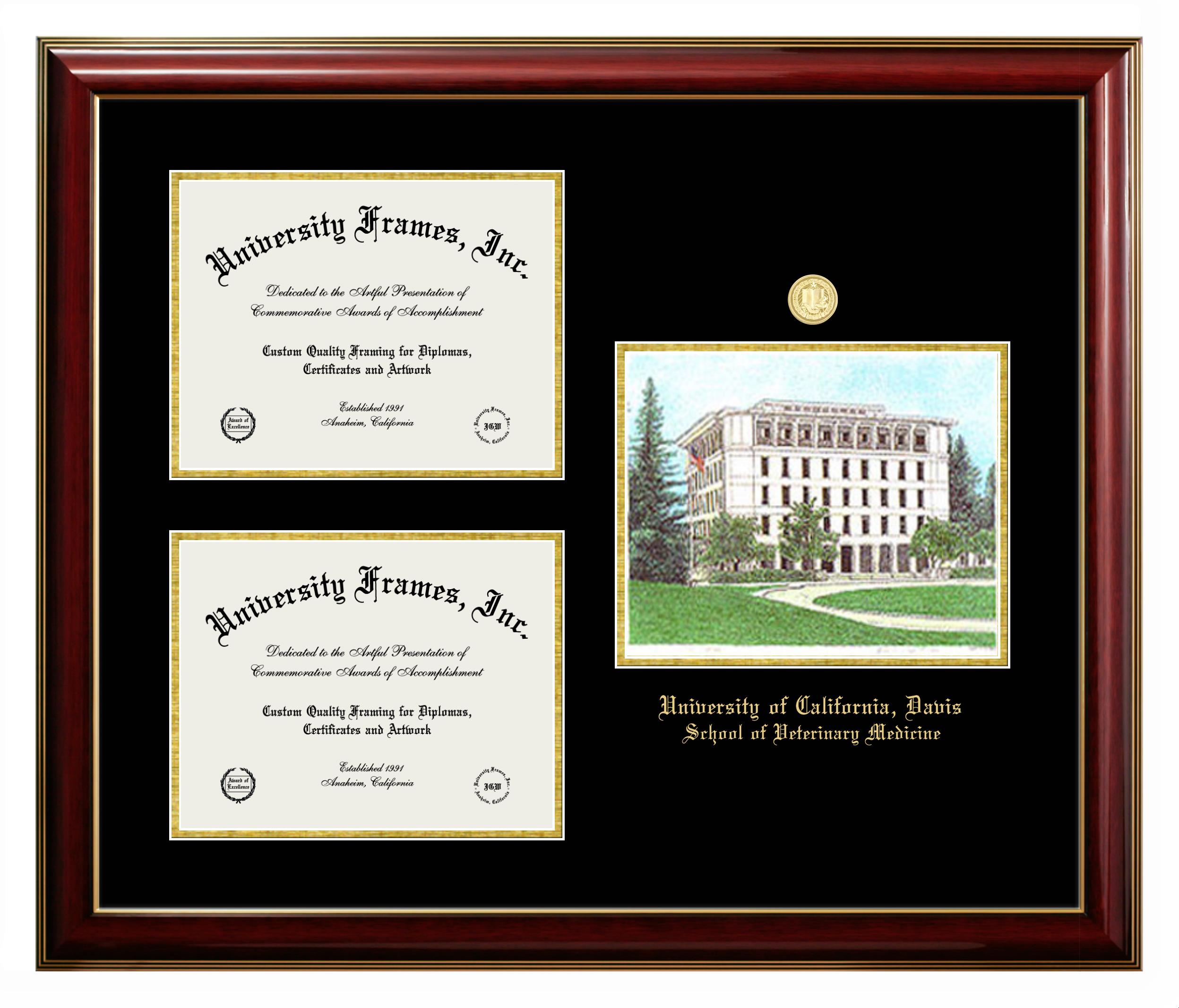 Are you a recent University of California Davis School of Veterinary Medicine graduate or are you looking for a special graduation gift idea for a recent grad? Our official University of California Davis School of Veterinary Medicine diploma frames and degree frames are perfect for preserving and displaying any hard-earned diploma. Our custom diploma frames are specifically made with the official University of California Davis School of Veterinary Medicine seal and are handcrafted with the utmost attention to detail. Start building your graduation frame now!