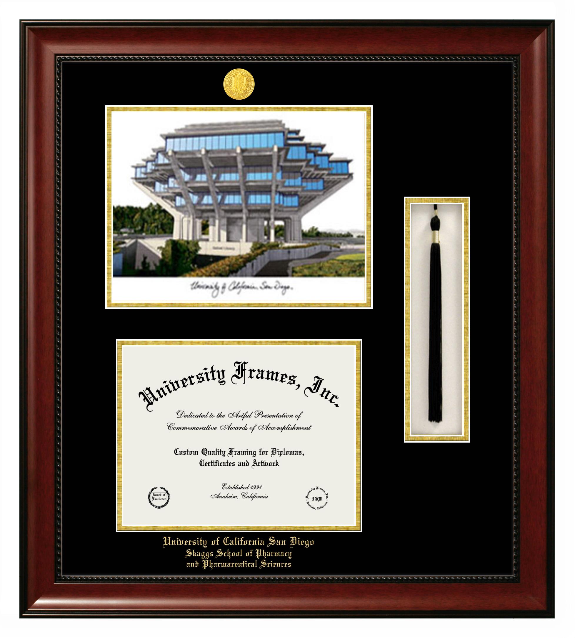 Are you a recent University of California San Diego Skaggs School of Pharmacy and Pharmaceutical Sciences graduate or are you looking for a special graduation gift idea for a recent grad? Our official University of California San Diego Skaggs School of Pharmacy and Pharmaceutical Sciences diploma frames and degree frames are perfect for preserving and displaying any hard-earned diploma. Our custom diploma frames are specifically made with the official University of California San Diego Skaggs School of Pharmacy and Pharmaceutical Sciences seal and are handcrafted with the utmost attention to detail. Start building your graduation frame now!