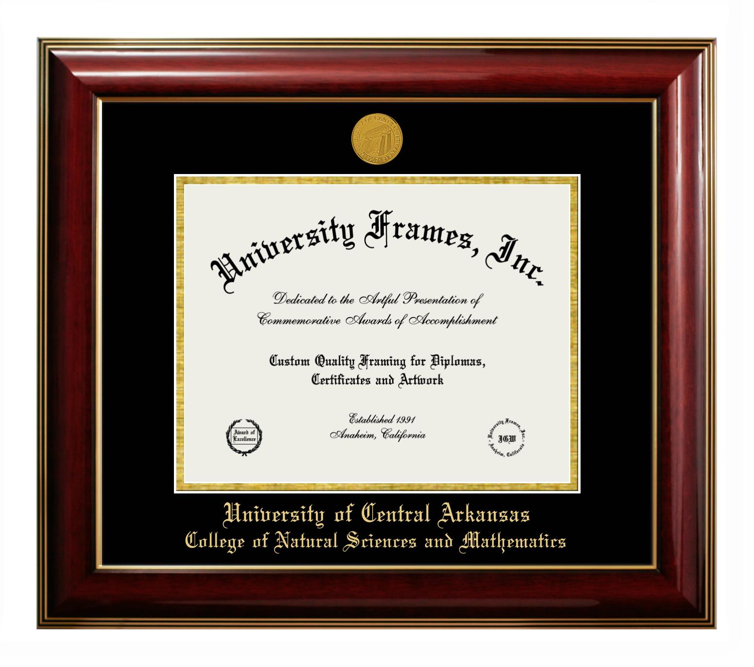 Are you a recent University of Central Arkansas College of Natural Sciences and Mathematics graduate or are you looking for a special graduation gift idea for a recent grad? Our official University of Central Arkansas College of Natural Sciences and Mathematics diploma frames and degree frames are perfect for preserving and displaying any hard-earned diploma. Our custom diploma frames are specifically made with the official University of Central Arkansas College of Natural Sciences and Mathematics seal and are handcrafted with the utmost attention to detail. Start building your graduation frame now!