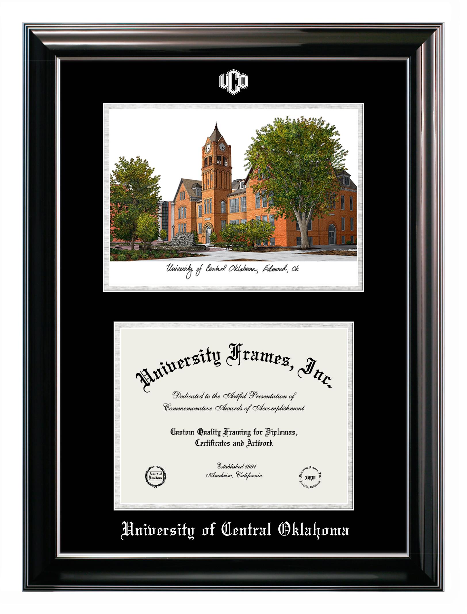 Are you a recent University of Central Oklahoma graduate or are you looking for a special graduation gift idea for a recent grad? Our official University of Central Oklahoma diploma frames and degree frames are perfect for preserving and displaying any hard-earned diploma. Our custom diploma frames are specifically made with the official University of Central Oklahoma seal and are handcrafted with the utmost attention to detail. Start building your graduation frame now!