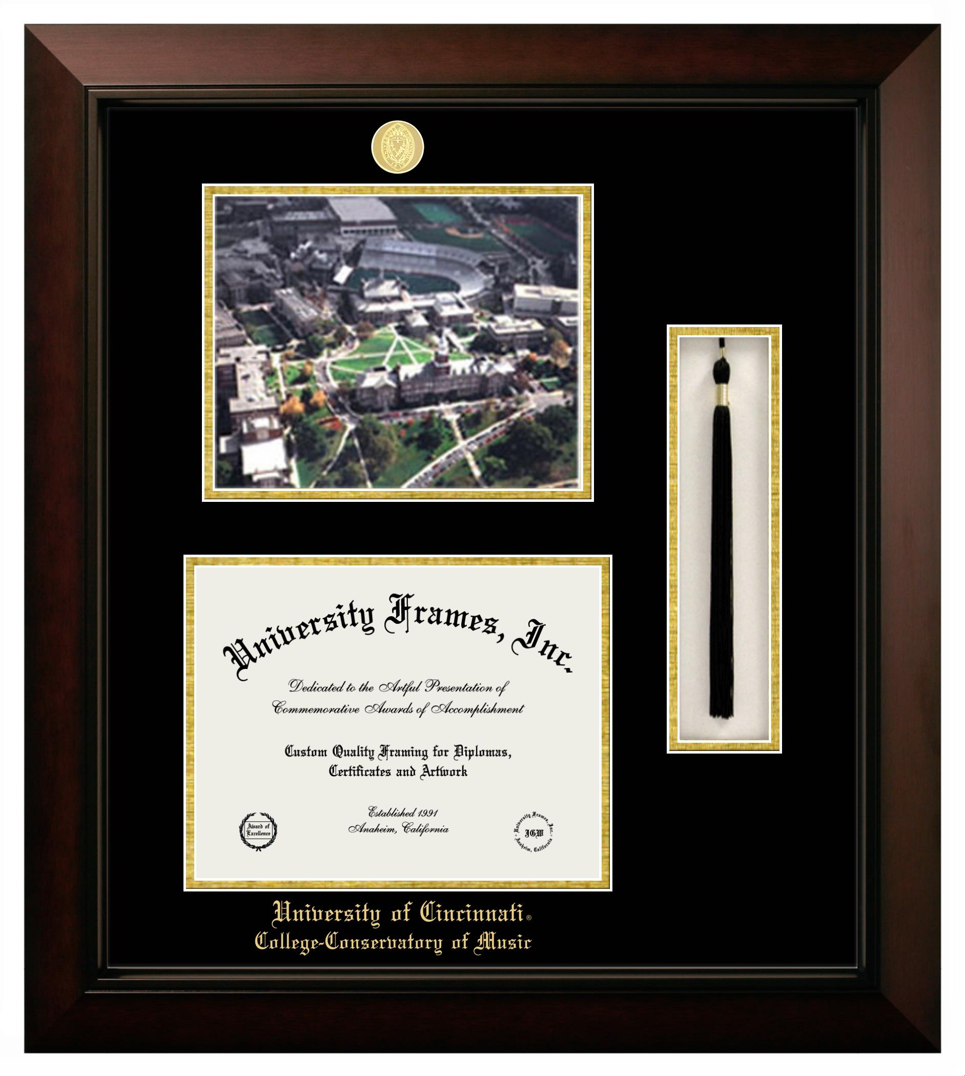 Are you a recent University of Cincinnati College-Conservatory of Music graduate or are you looking for a special graduation gift idea for a recent grad? Our official University of Cincinnati College-Conservatory of Music diploma frames and degree frames are perfect for preserving and displaying any hard-earned diploma. Our custom diploma frames are specifically made with the official University of Cincinnati College-Conservatory of Music seal and are handcrafted with the utmost attention to detail. Start building your graduation frame now!