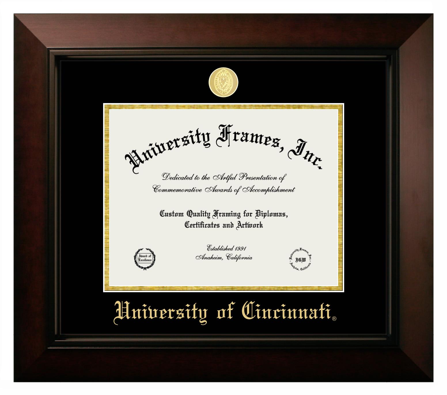 Are you a recent University of Cincinnati graduate or are you looking for a special graduation gift idea for a recent grad? Our official University of Cincinnati diploma frames and degree frames are perfect for preserving and displaying any hard-earned diploma. Our custom diploma frames are specifically made with the official University of Cincinnati seal and are handcrafted with the utmost attention to detail. Start building your graduation frame now!