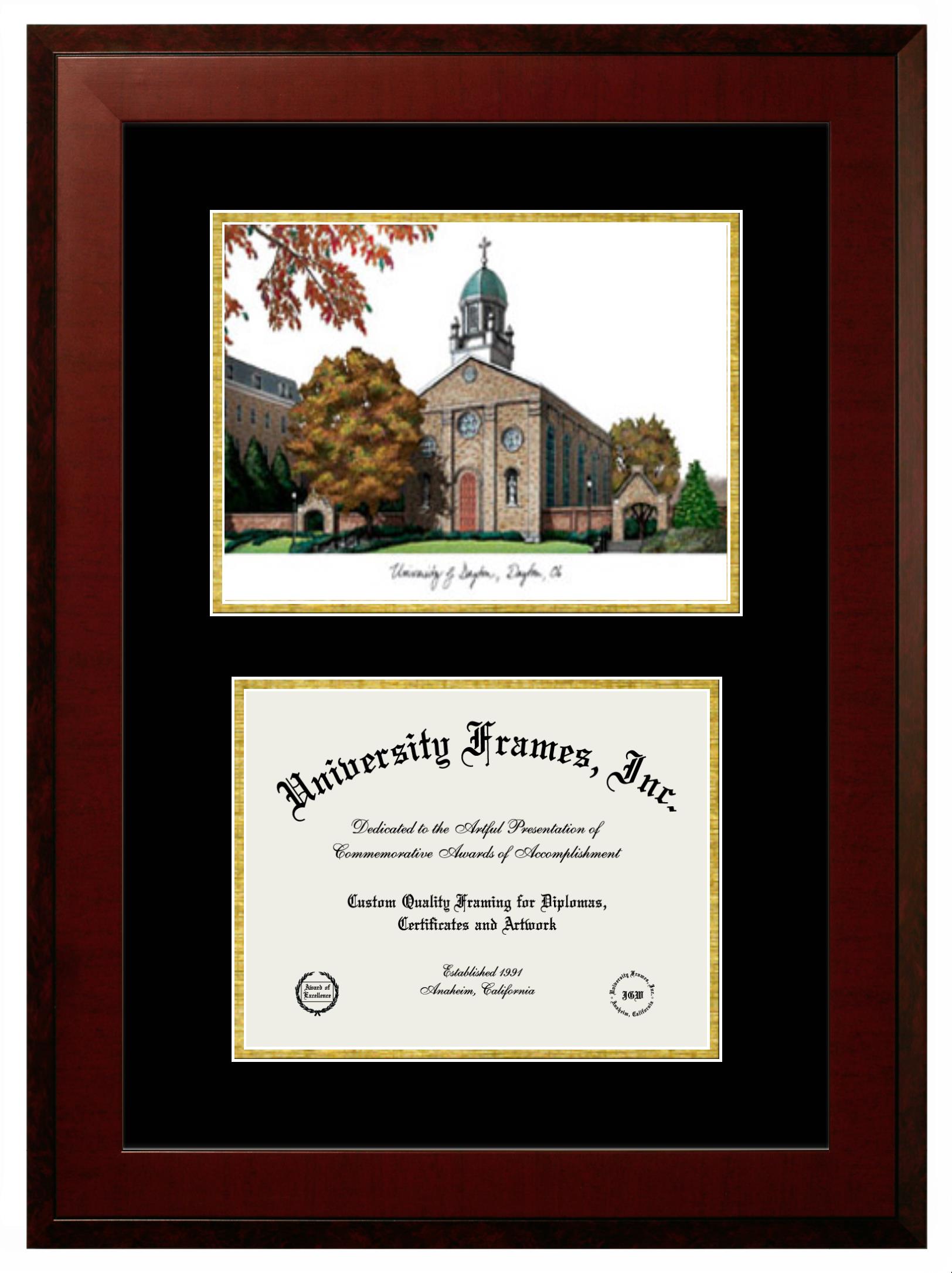 Are you a recent University of Dayton School of Law graduate or are you looking for a special graduation gift idea for a recent grad? Our official University of Dayton School of Law diploma frames and degree frames are perfect for preserving and displaying any hard-earned diploma. Our custom diploma frames are specifically made with the official University of Dayton School of Law seal and are handcrafted with the utmost attention to detail. Start building your graduation frame now!