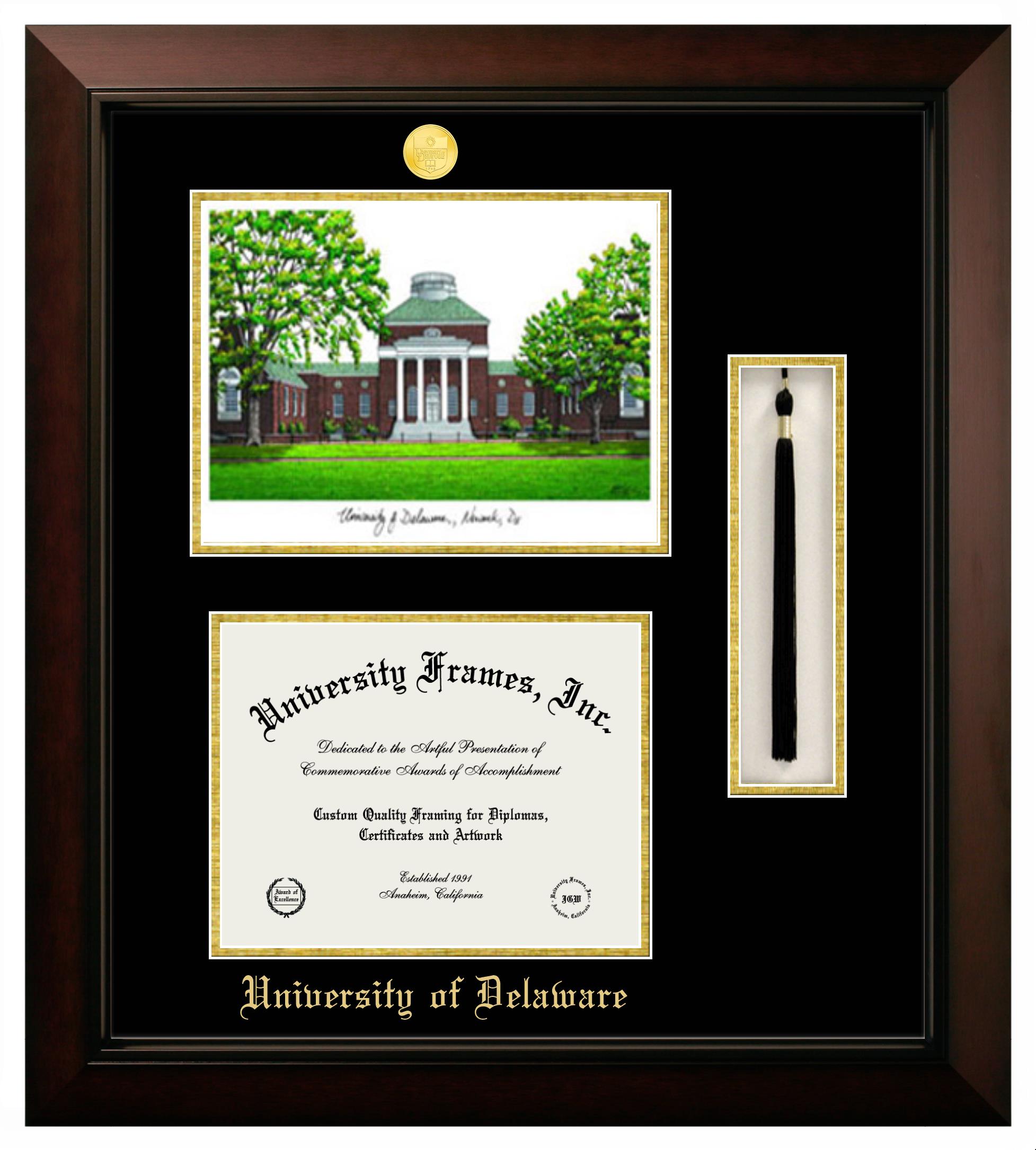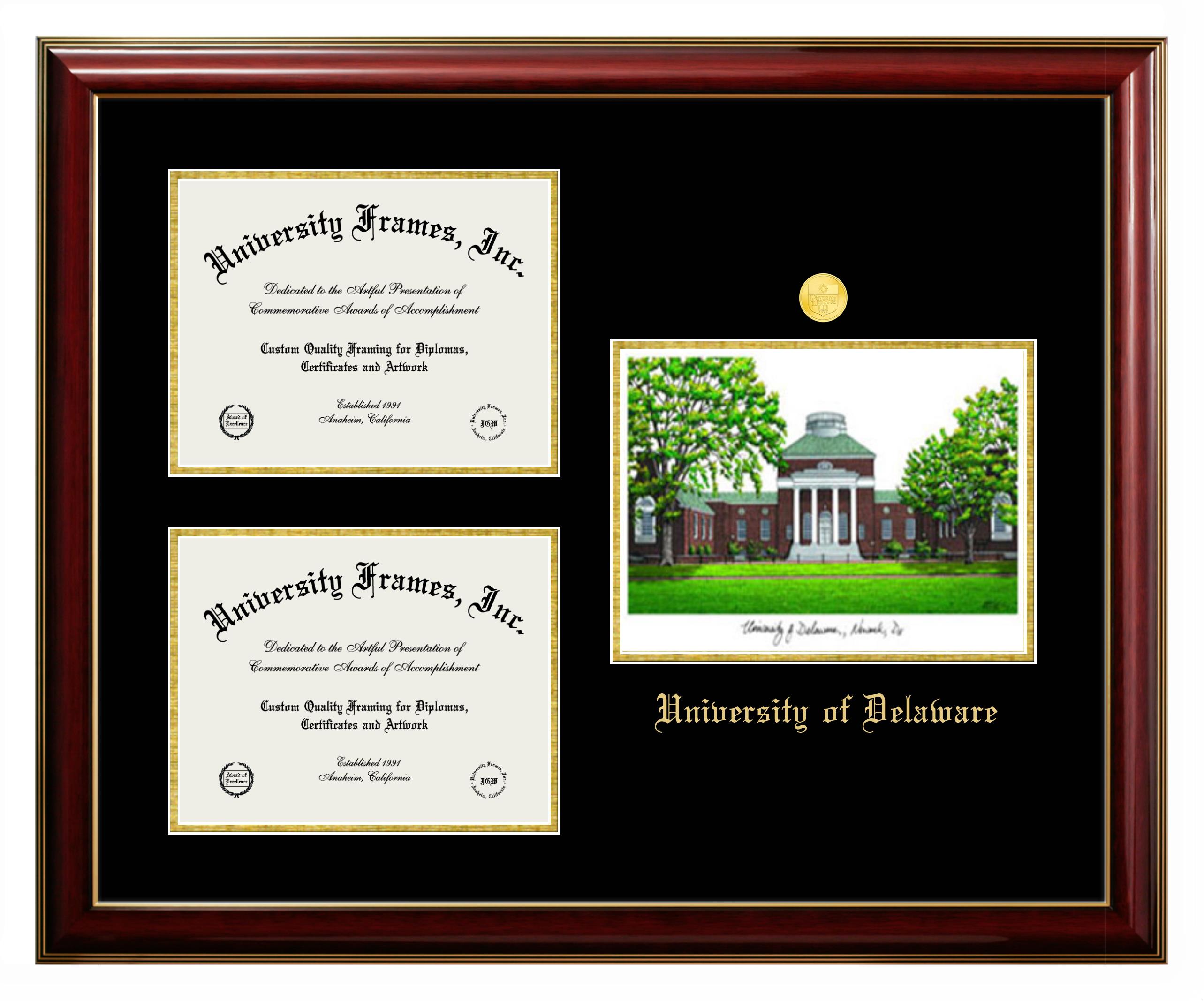 Are you a recent University of Delaware graduate or are you looking for a special graduation gift idea for a recent grad? Our official University of Delaware diploma frames and degree frames are perfect for preserving and displaying any hard-earned diploma. Our custom diploma frames are specifically made with the official University of Delaware seal and are handcrafted with the utmost attention to detail. Start building your graduation frame now!