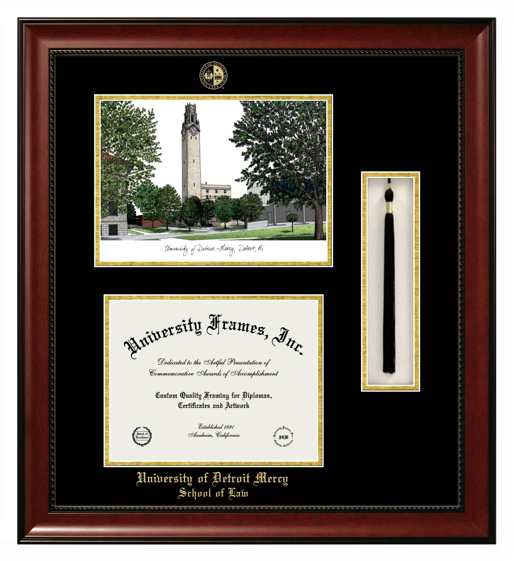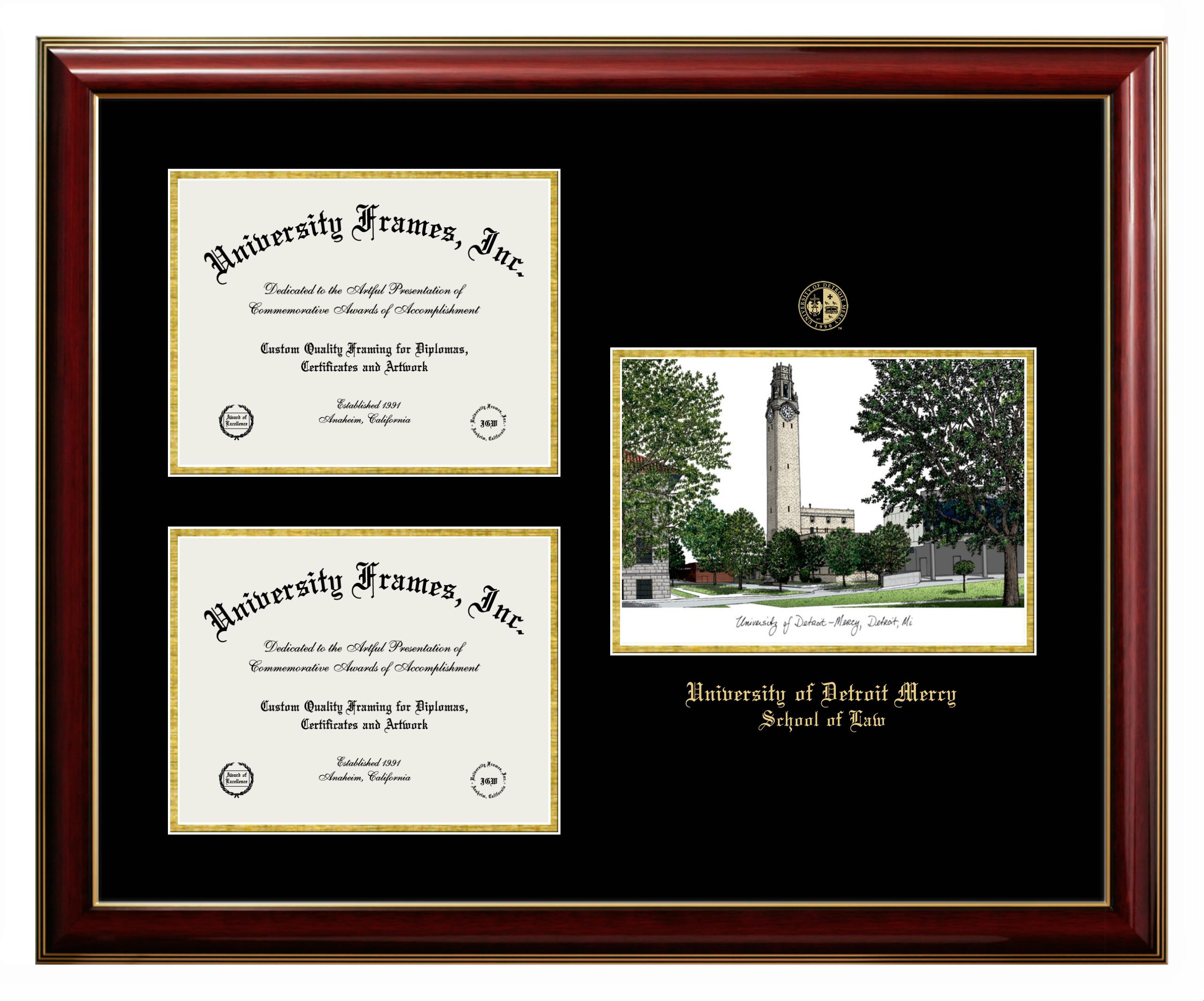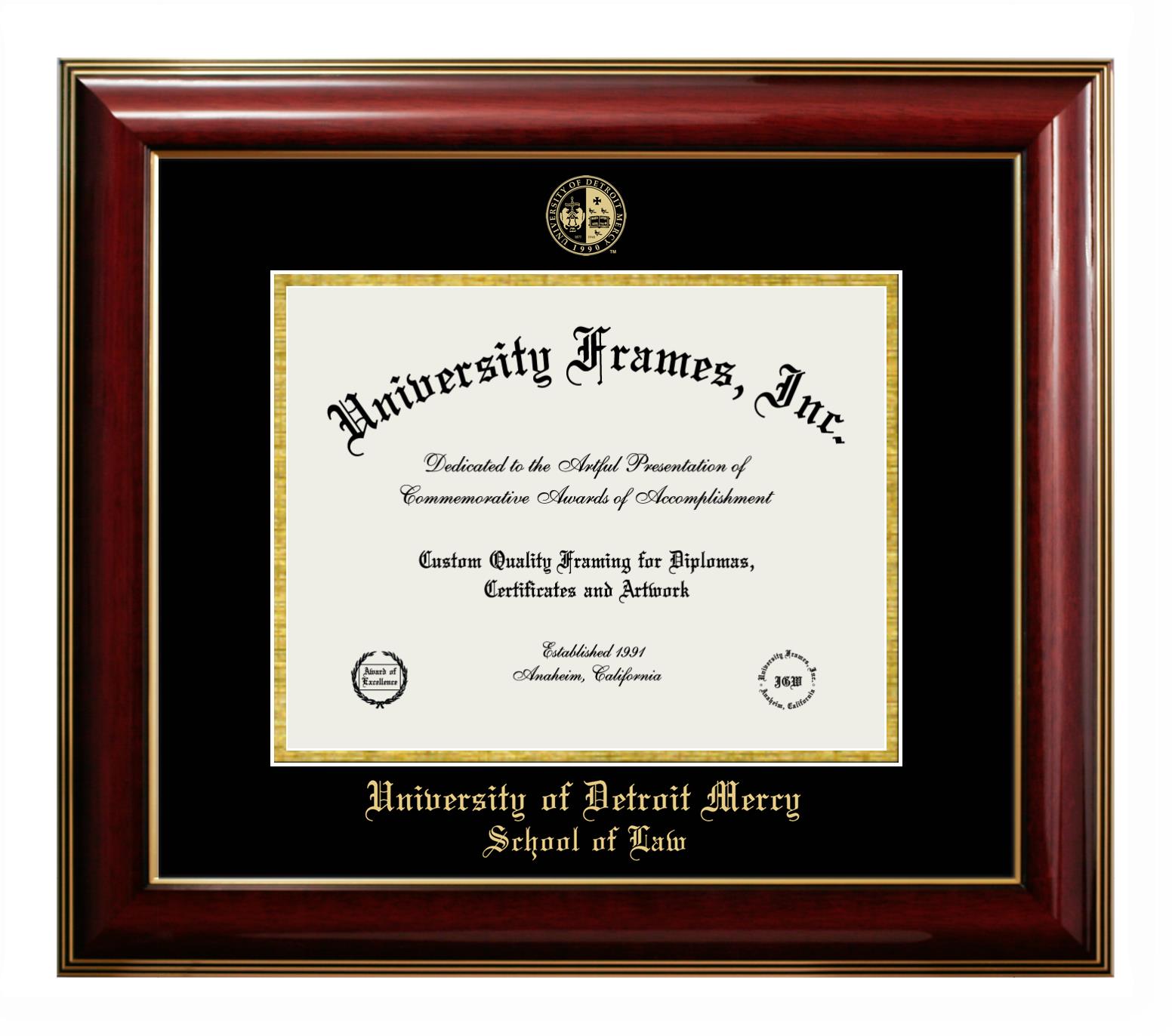 Are you a recent University of Detroit Mercy School of Law graduate or are you looking for a special graduation gift idea for a recent grad? Our official University of Detroit Mercy School of Law diploma frames and degree frames are perfect for preserving and displaying any hard-earned diploma. Our custom diploma frames are specifically made with the official University of Detroit Mercy School of Law seal and are handcrafted with the utmost attention to detail. Start building your graduation frame now!