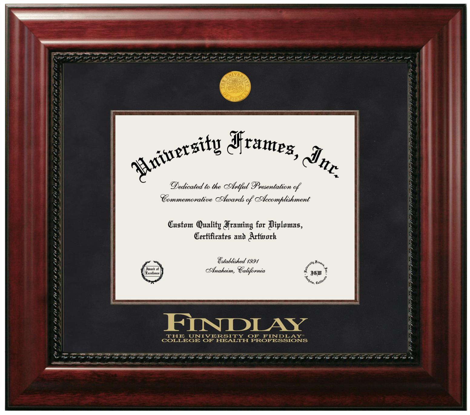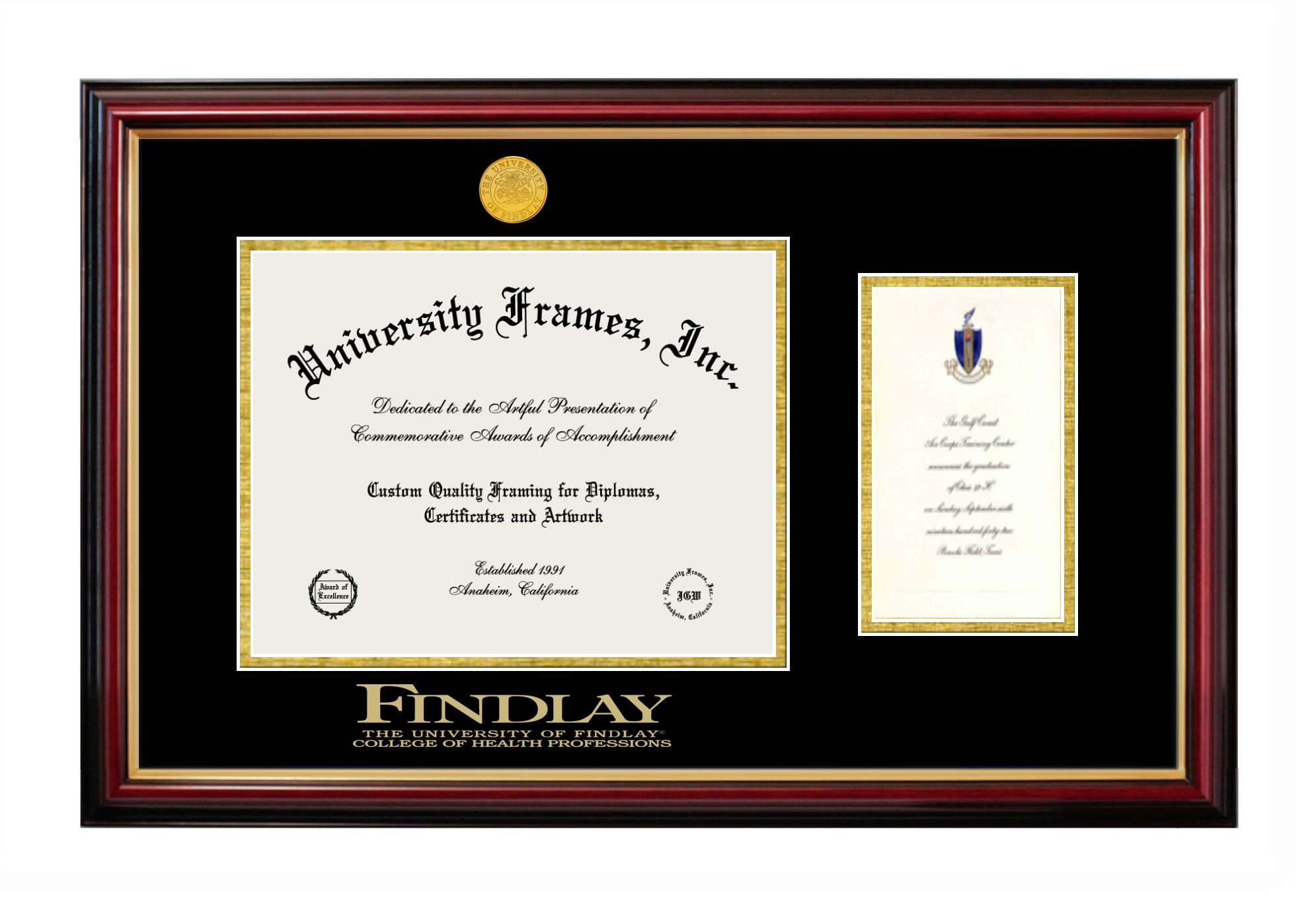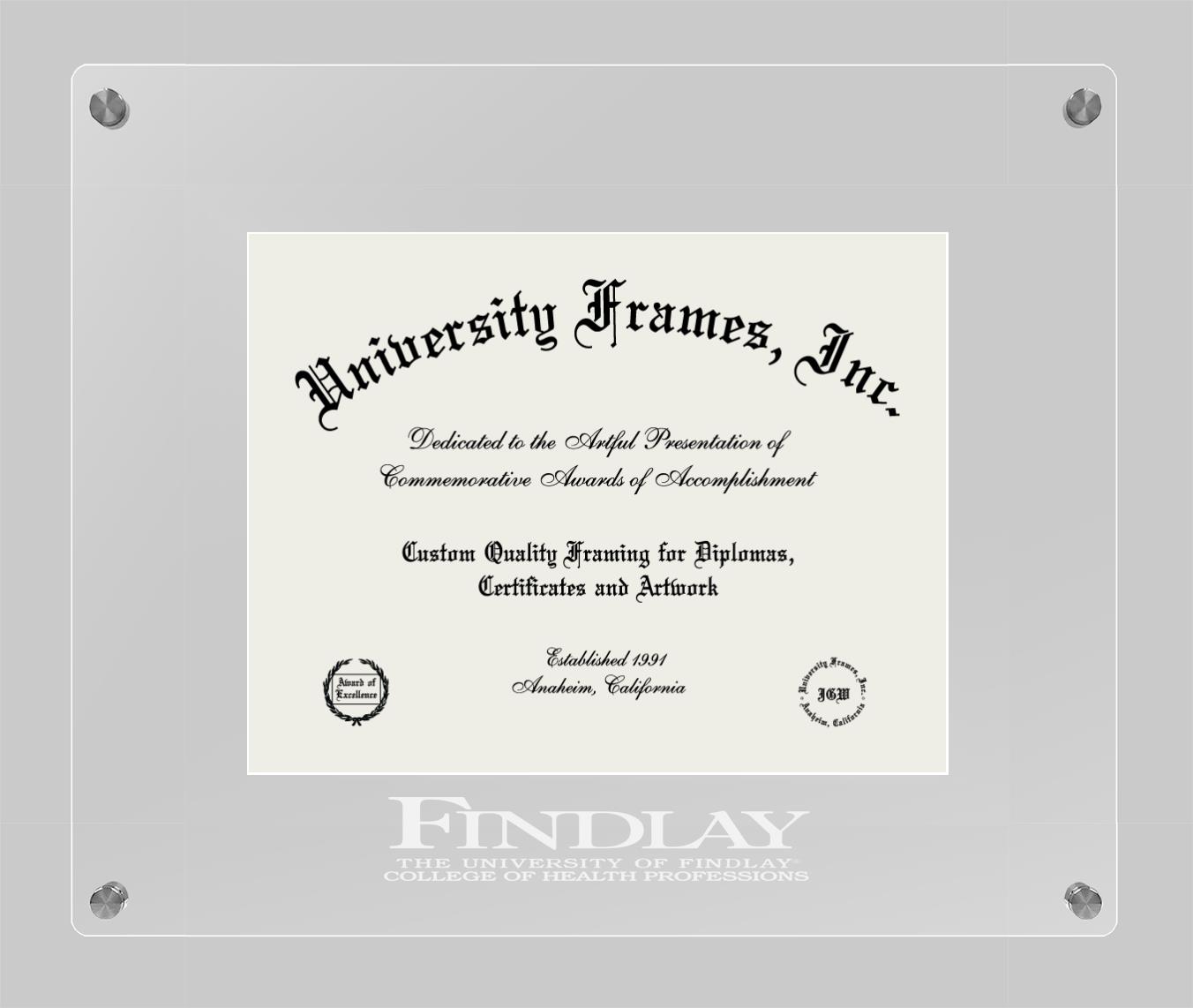 Are you a recent University of Findlay College of Health Professions graduate or are you looking for a special graduation gift idea for a recent grad? Our official University of Findlay College of Health Professions diploma frames and degree frames are perfect for preserving and displaying any hard-earned diploma. Our custom diploma frames are specifically made with the official University of Findlay College of Health Professions seal and are handcrafted with the utmost attention to detail. Start building your graduation frame now!
