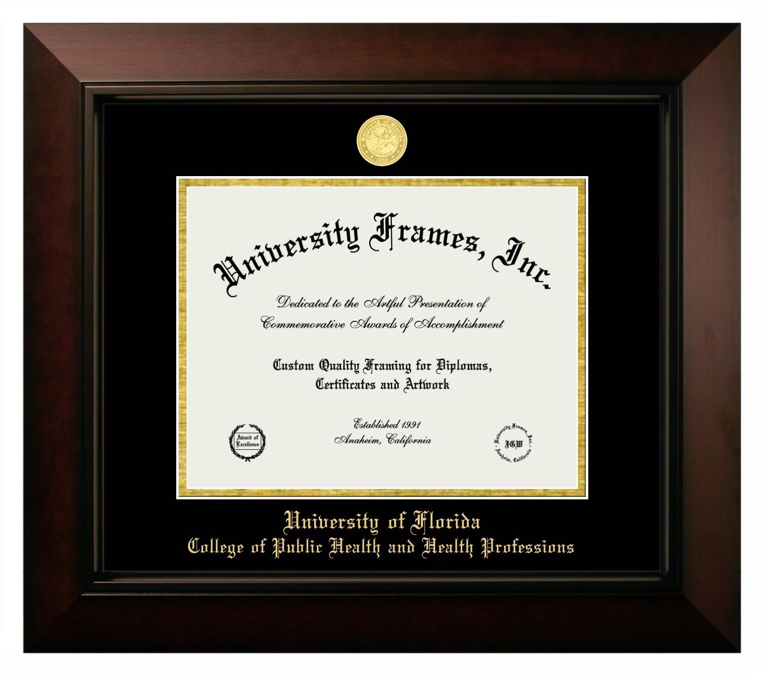 Are you a recent University of Florida College of Public Health and Health Professions graduate or are you looking for a special graduation gift idea for a recent grad? Our official University of Florida College of Public Health and Health Professions diploma frames and degree frames are perfect for preserving and displaying any hard-earned diploma. Our custom diploma frames are specifically made with the official University of Florida College of Public Health and Health Professions seal and are handcrafted with the utmost attention to detail. Start building your graduation frame now!