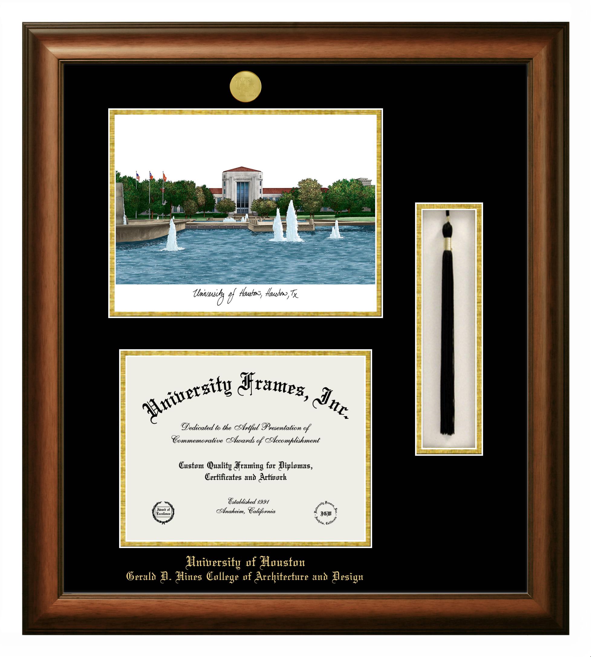 Are you a recent University of Houston Gerald D. Hines College of Architecture and Design graduate or are you looking for a special graduation gift idea for a recent grad? Our official University of Houston Gerald D. Hines College of Architecture and Design diploma frames and degree frames are perfect for preserving and displaying any hard-earned diploma. Our custom diploma frames are specifically made with the official University of Houston Gerald D. Hines College of Architecture and Design seal and are handcrafted with the utmost attention to detail. Start building your graduation frame now!